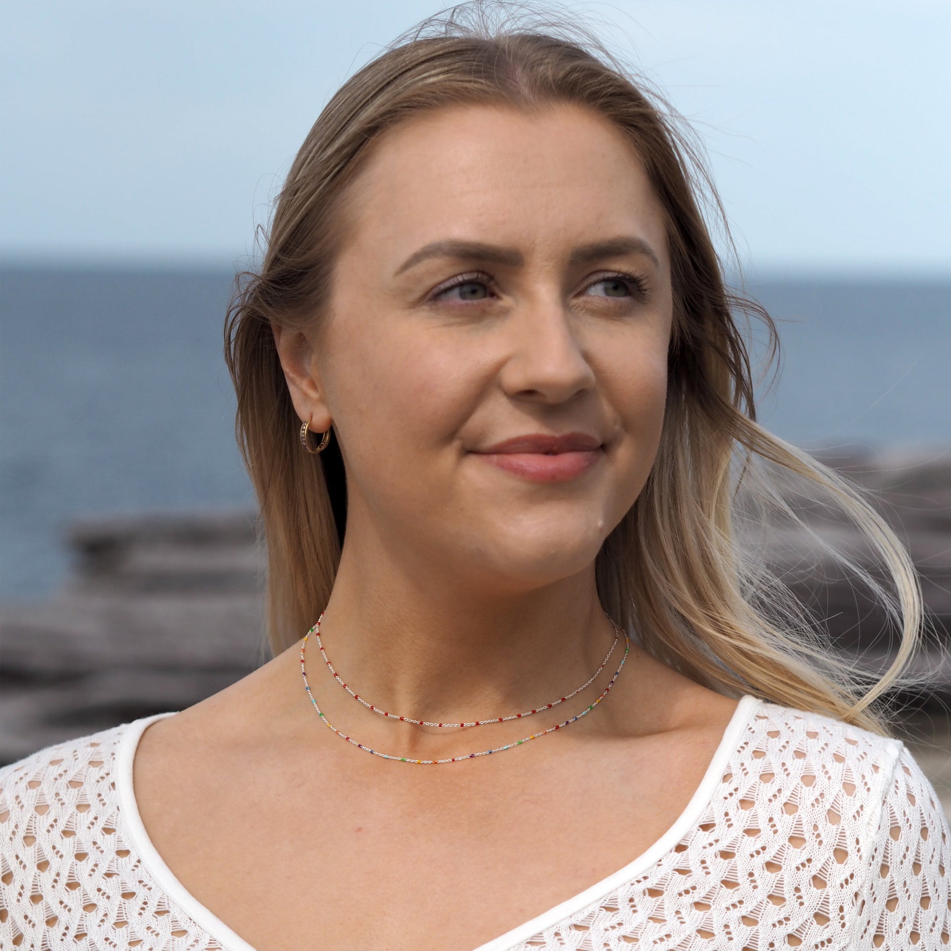 Fine Sterling Silver & Rainbow Enamel Confetti Chain Necklace - 16 Inches