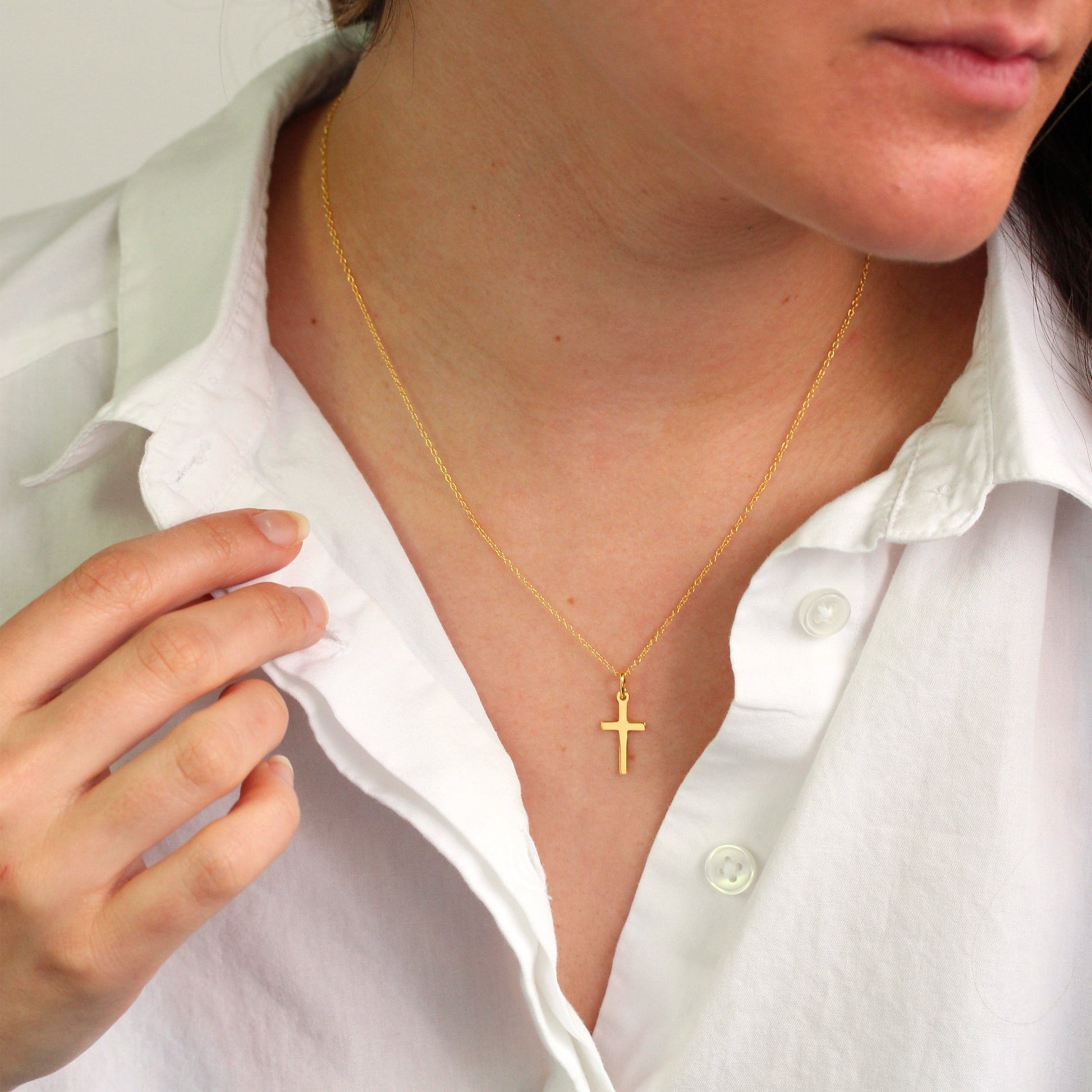Vergoldet Sterlingsilber 45,5cm Kreuz Halskette