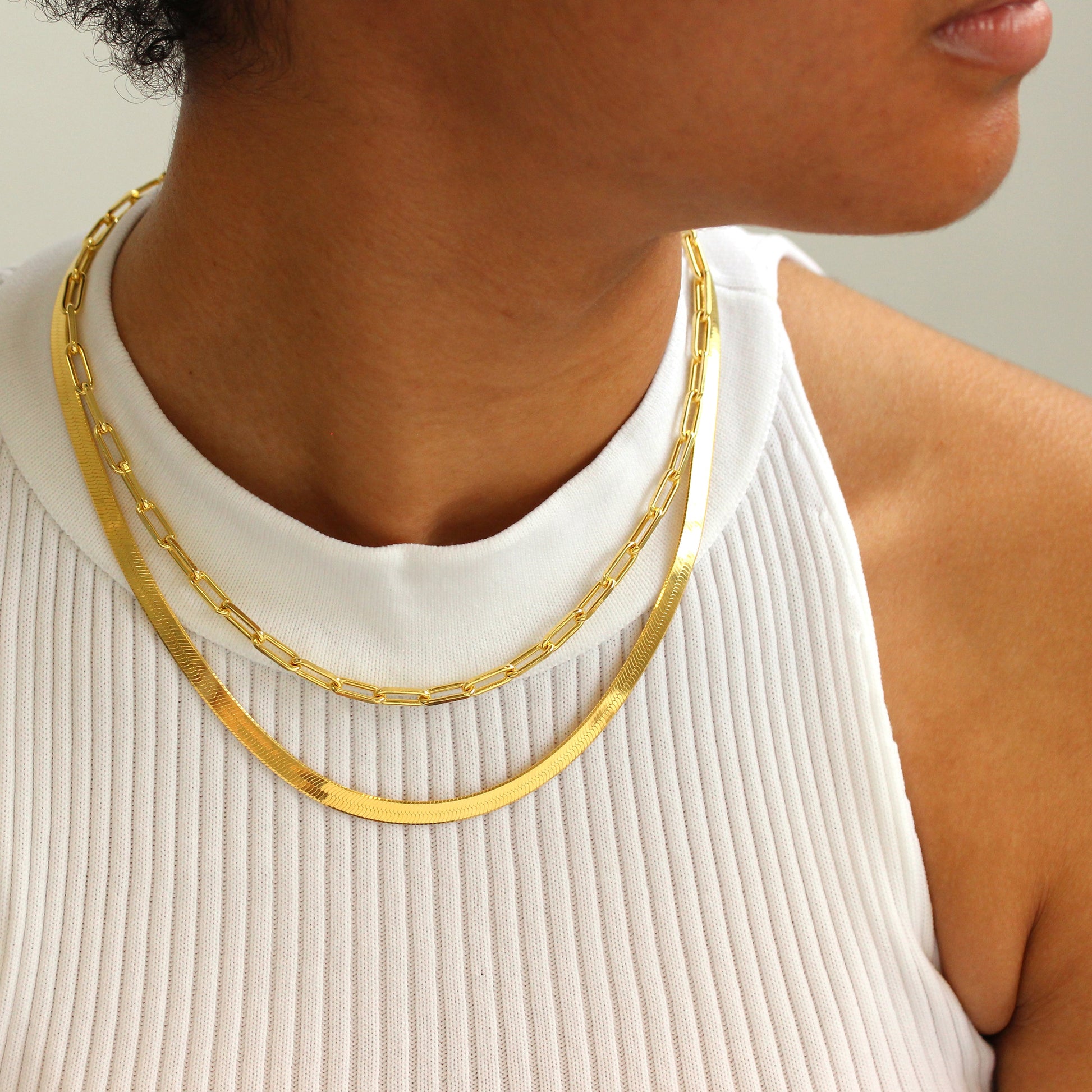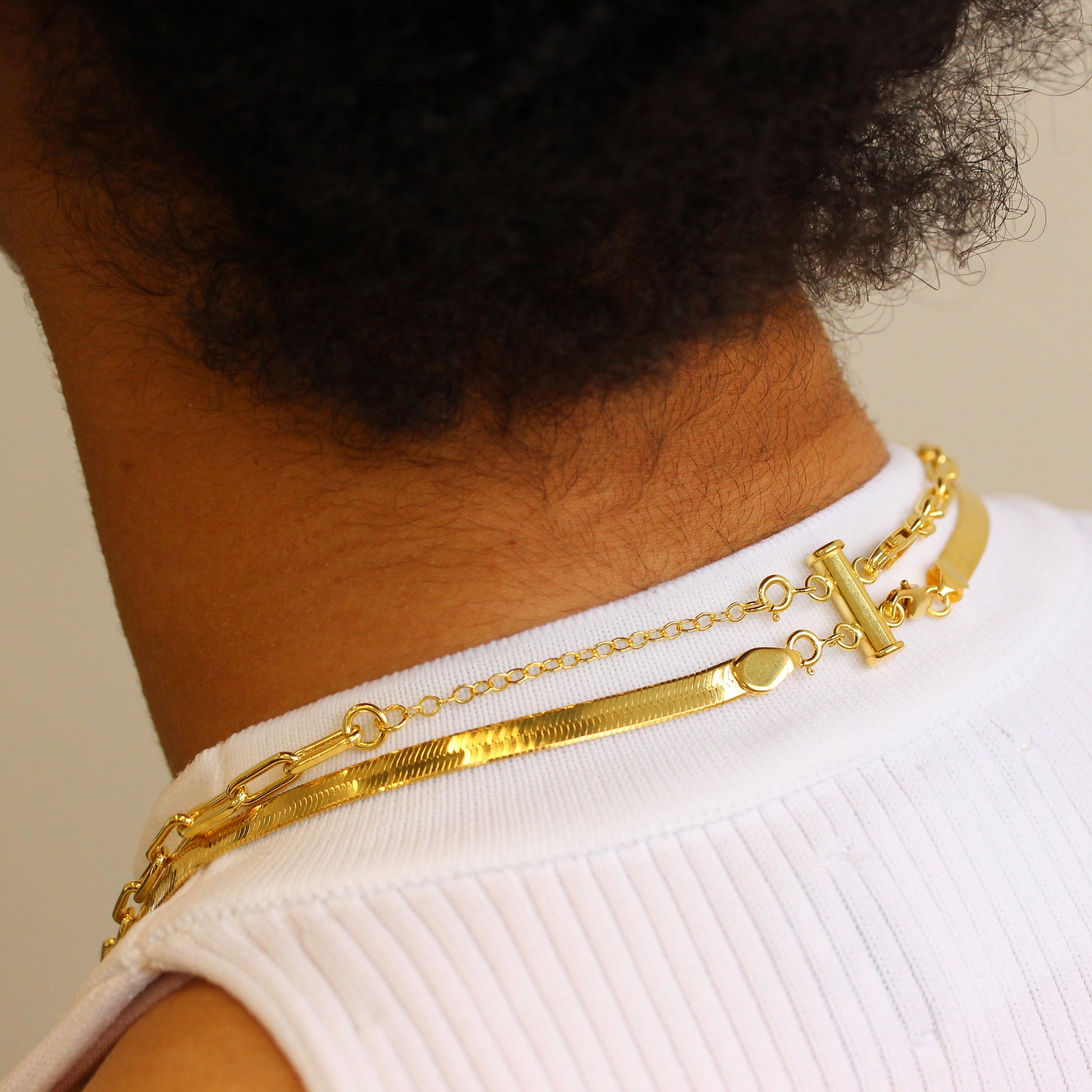 Vergoldet Sterlingsilber 2 - Reihig Überlagerungs Halskette Bolzenringverschluss