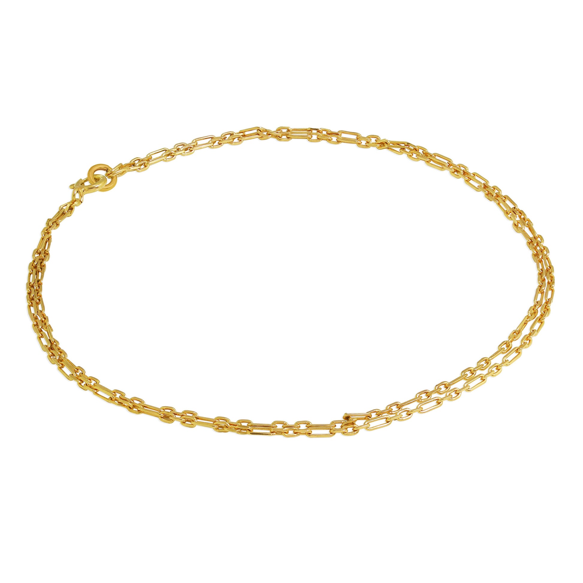 Vergoldet Sterlingsilber 2mm Gerundet Figaro Doppelkette Fußkette - 25,5cm