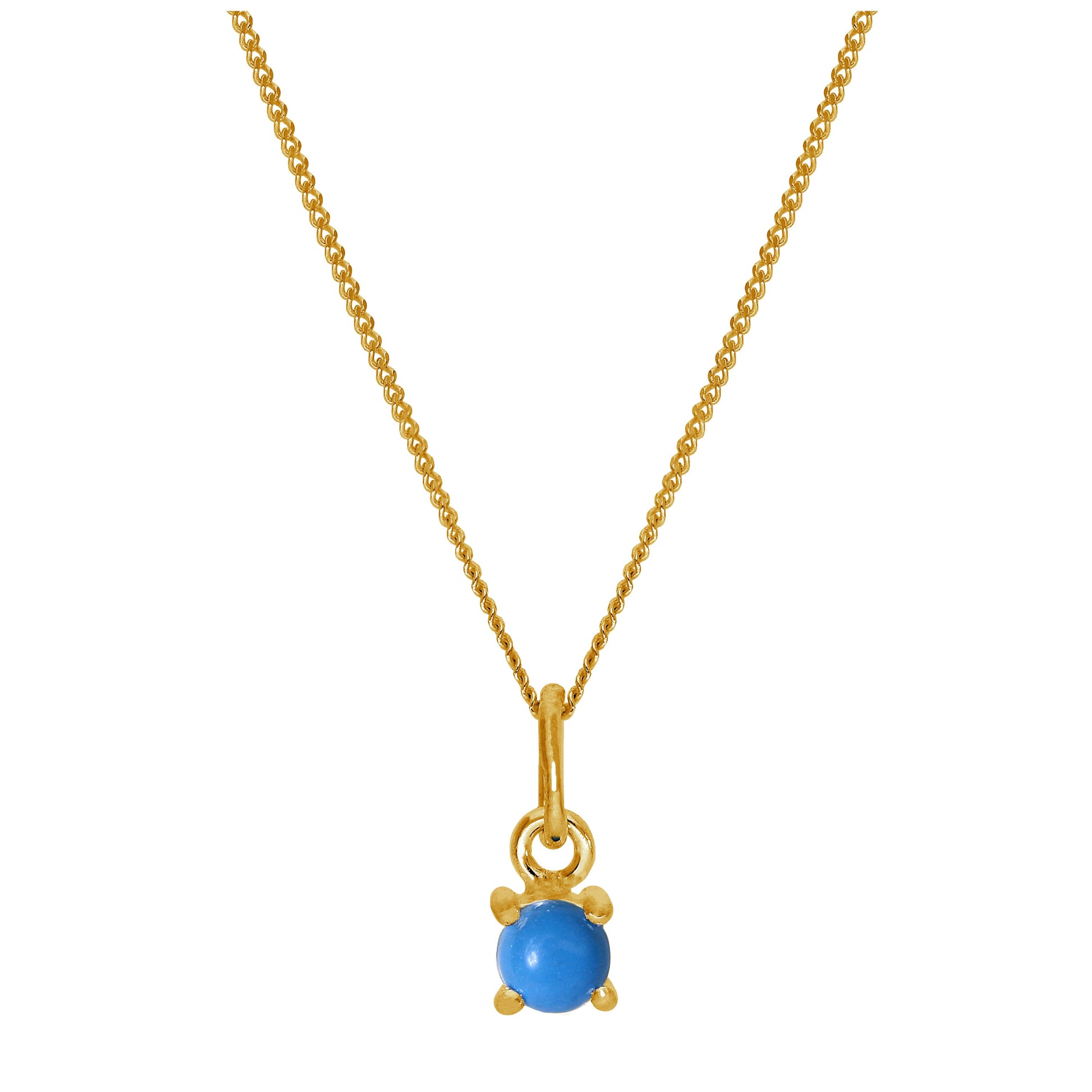 Vergoldete Halskette aus Sterlingsilber mit 4 mm türkisfarbenem Geburtsstein und Krappenfassung, 14–32 Zoll