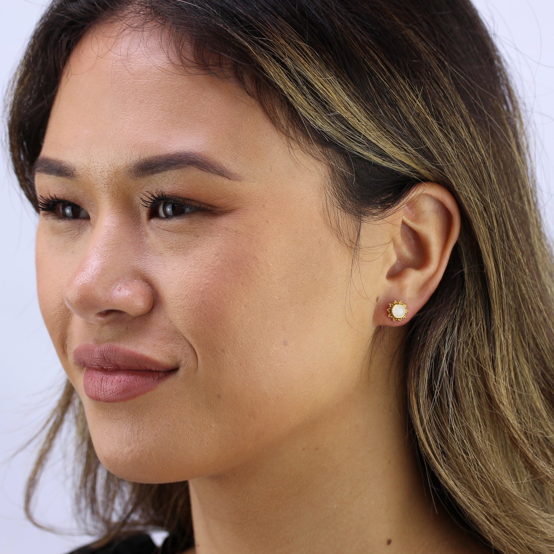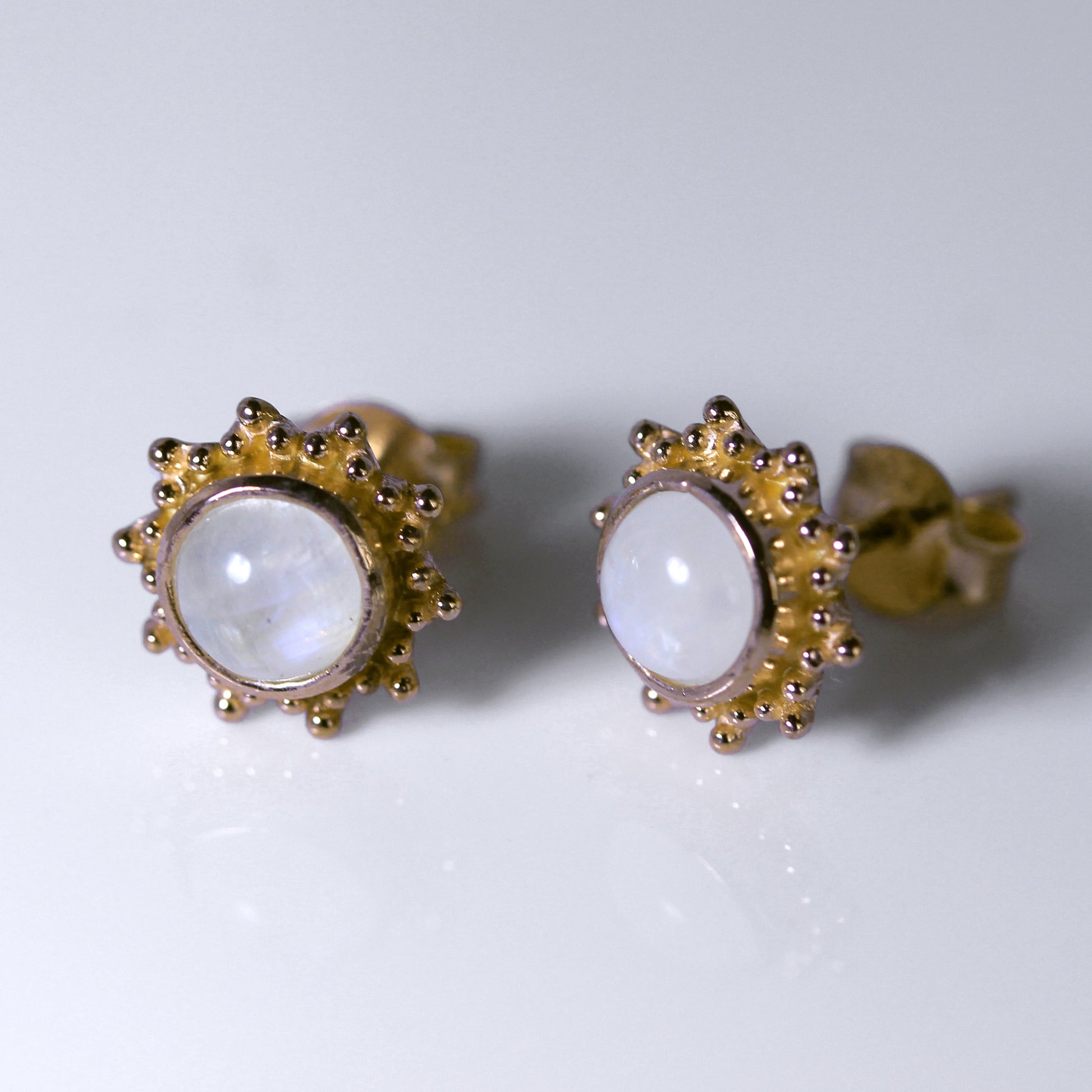 Vergoldet Sterlingsilber & 5mm Mondstein Sonne Ohrstecker