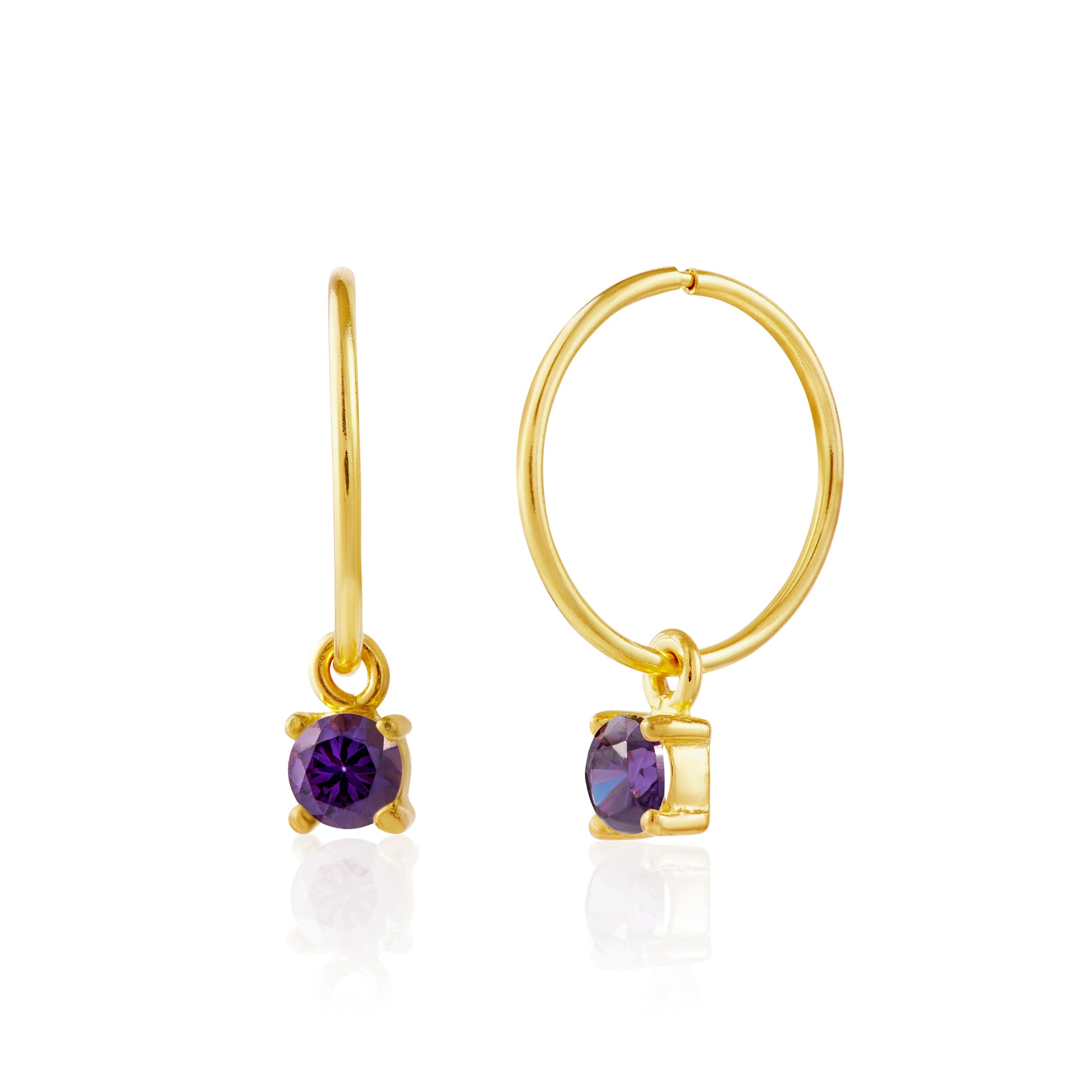Vergoldet Sterlingsilber Amethyst CZ 12mm Anhänger Creolen Ohrringe