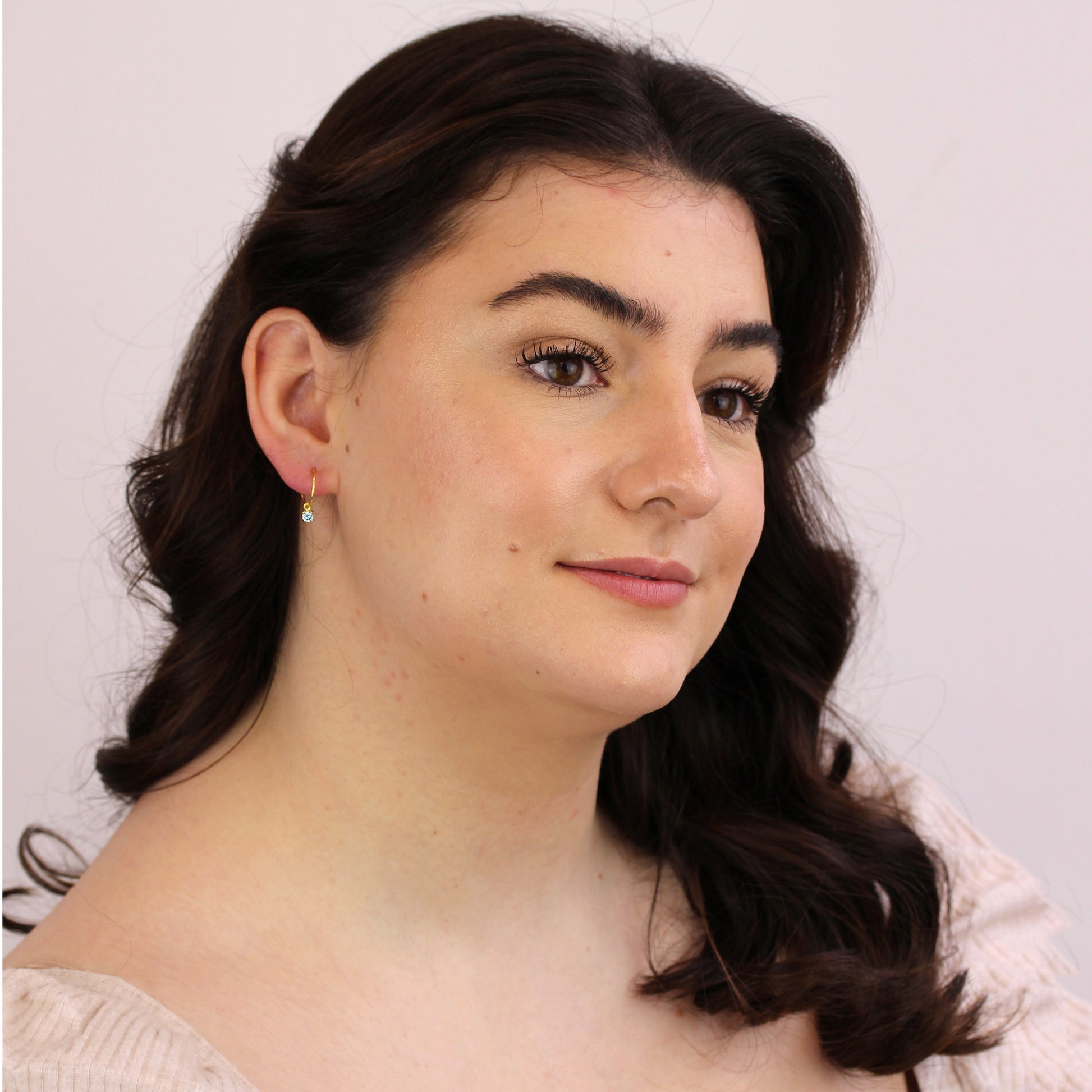 Vergoldet Sterlingsilber Aquamarin CZ 12mm Anhänger Creolen Ohrringe