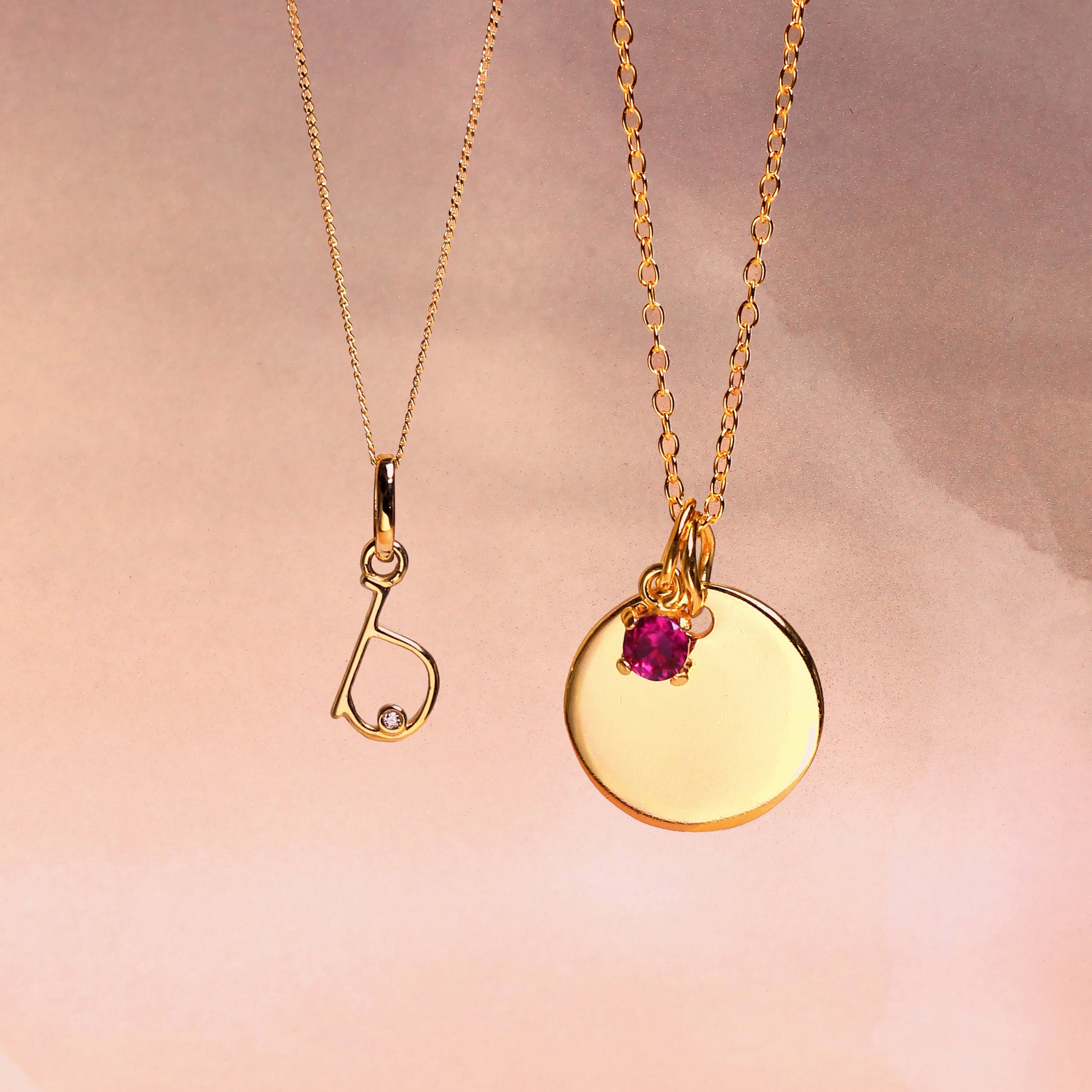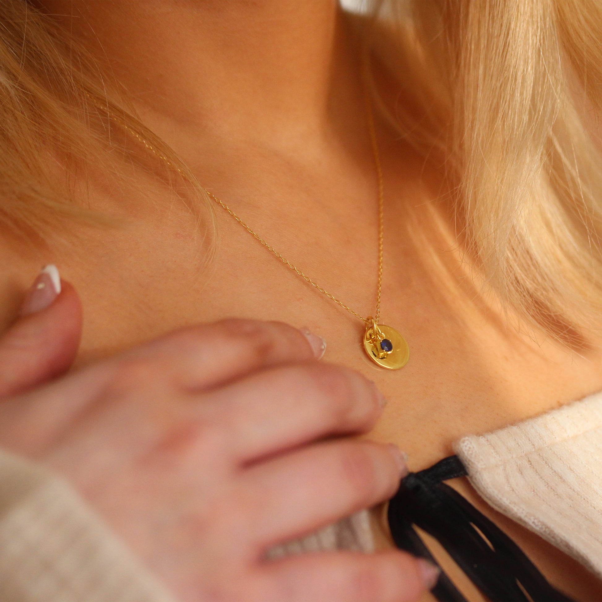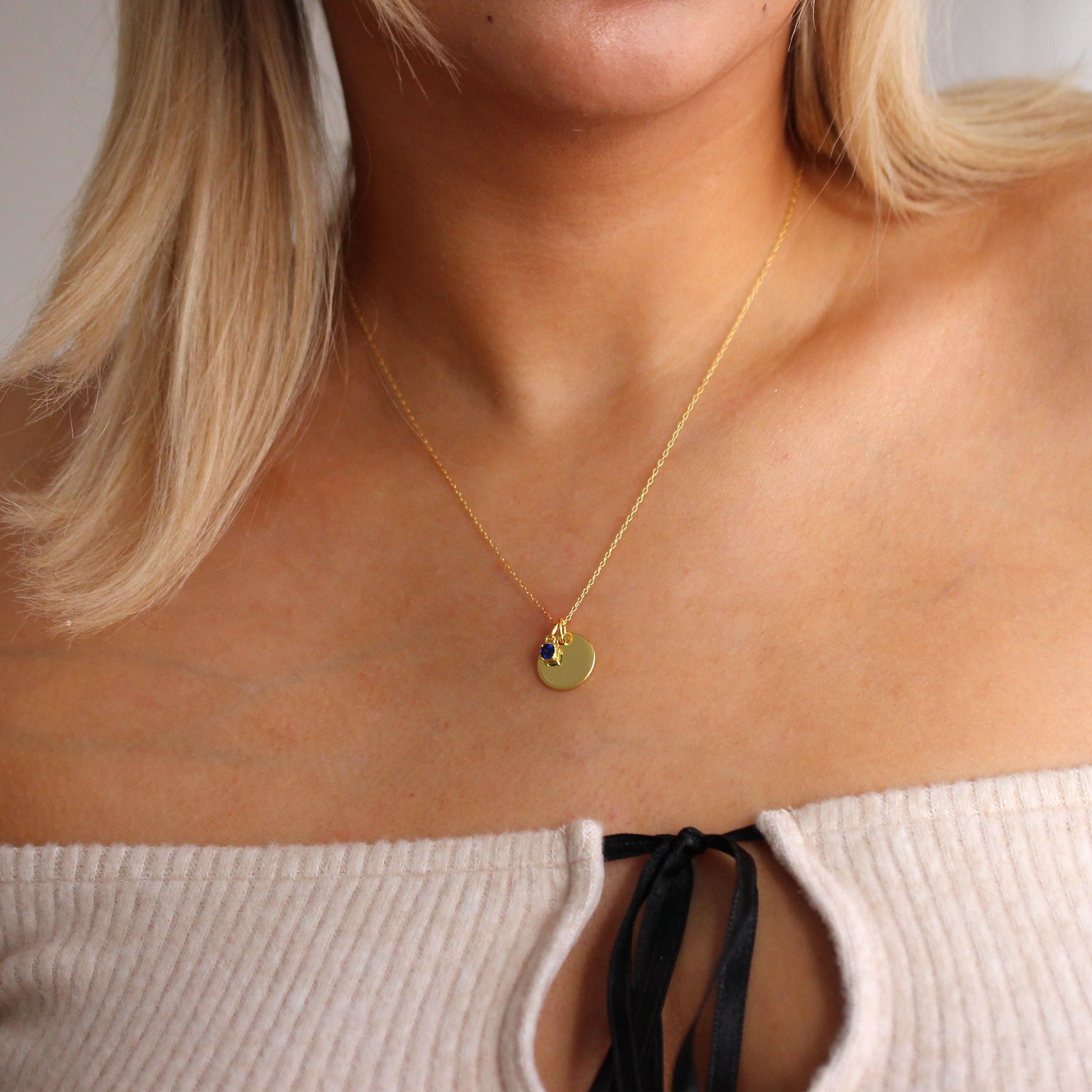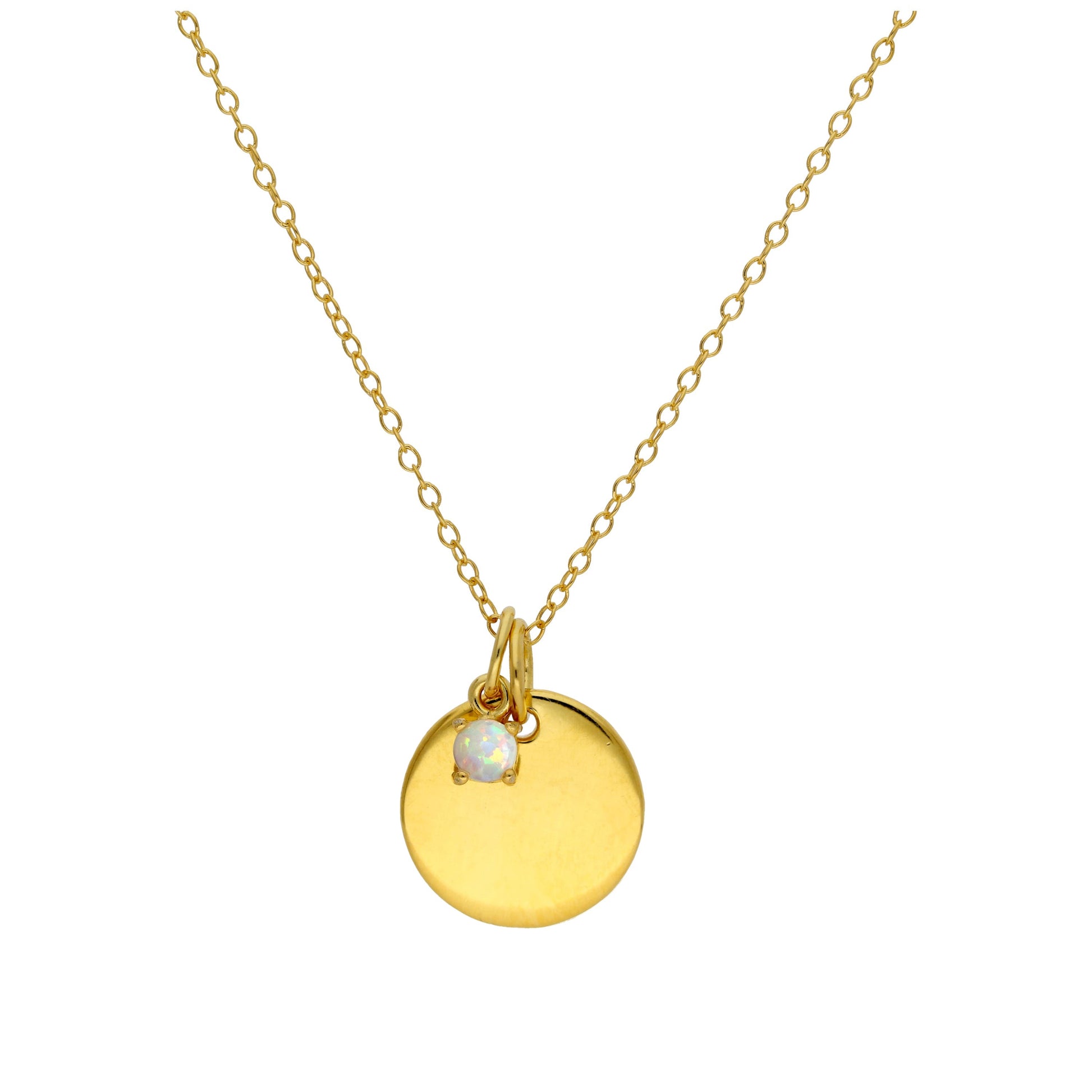 Vergoldete Sterling Silber Birthstone CZ & Round Engravable Tag Halskette 16 - 22 Zoll