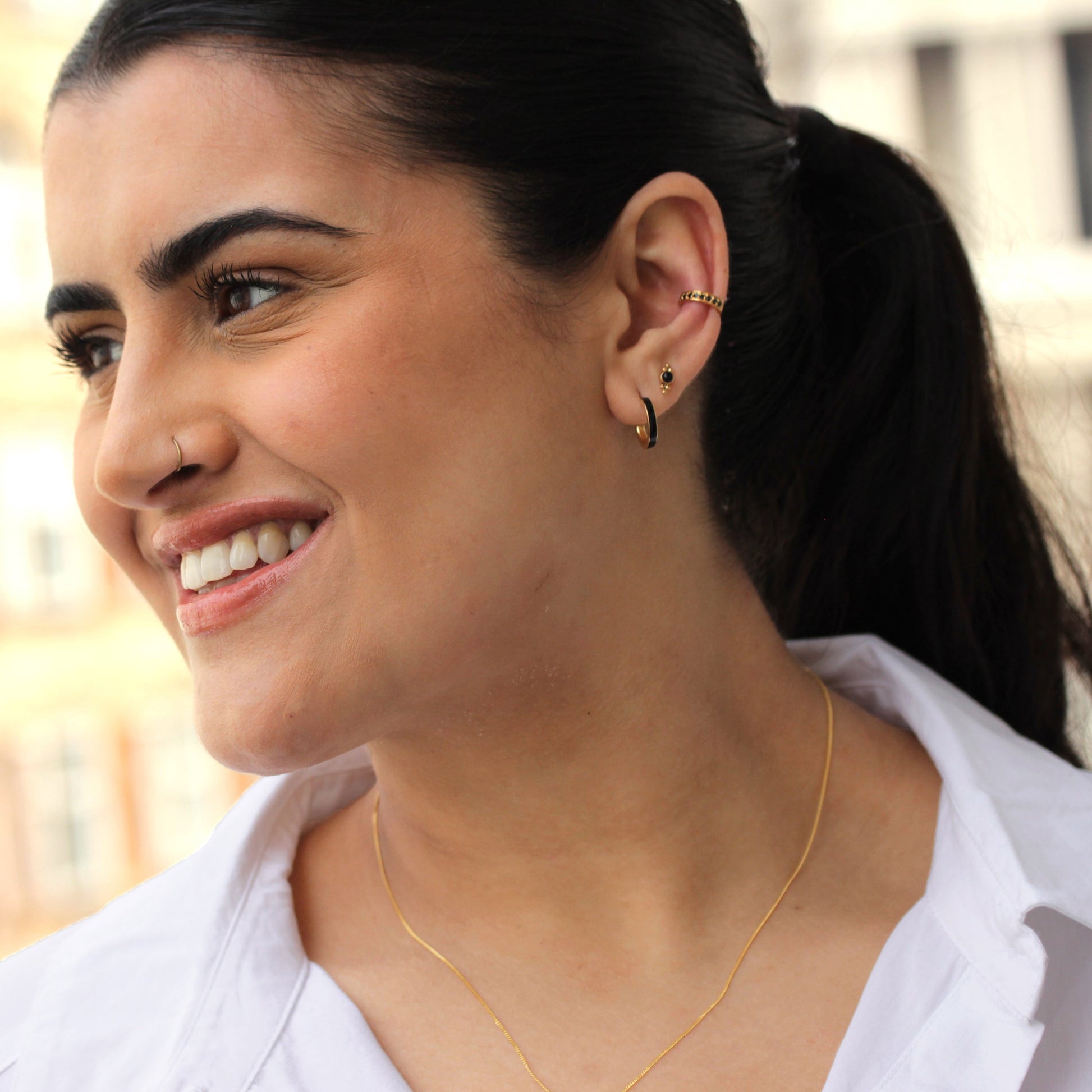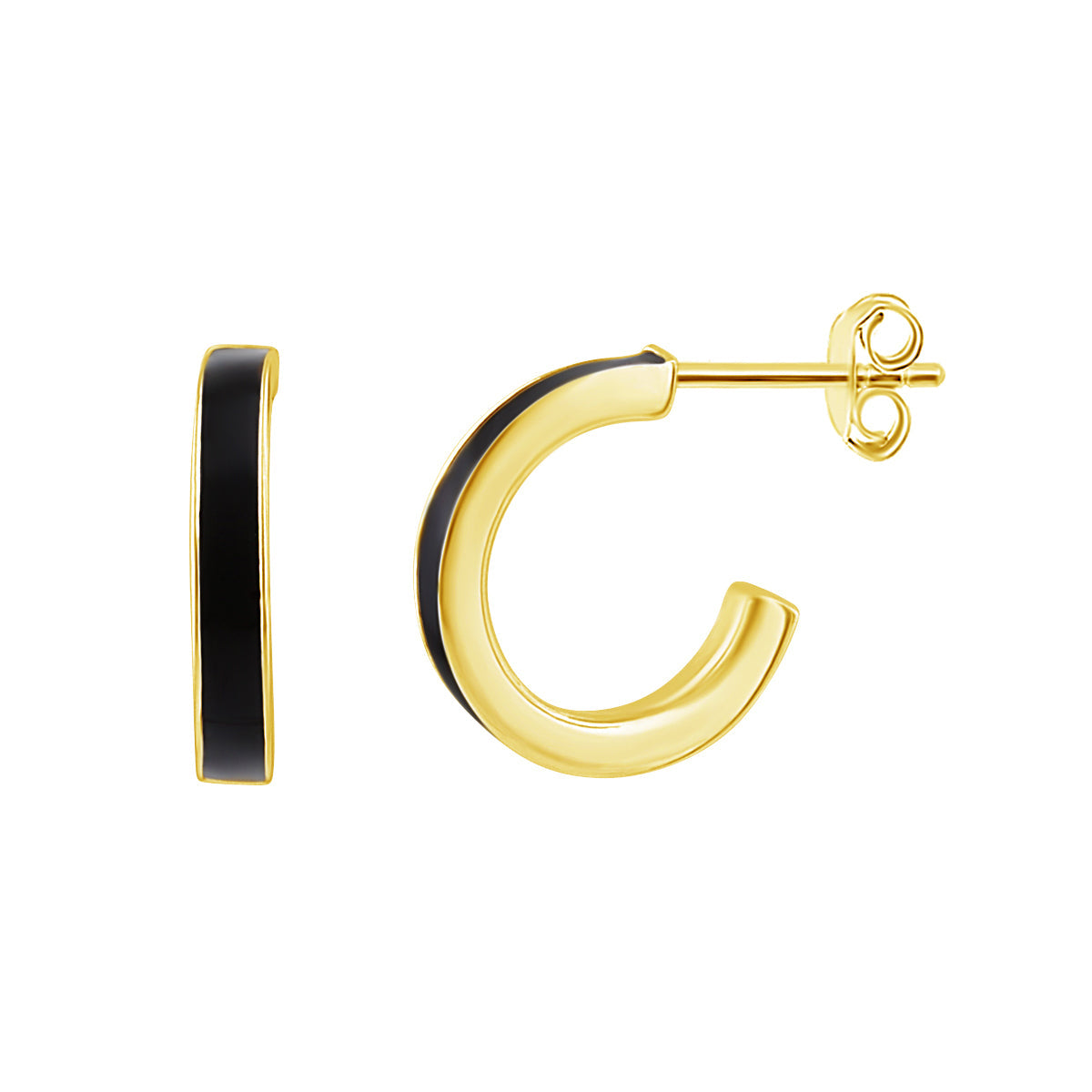 Vergoldet Sterlingsilber Schwarz 13mm Creolen Ohrstecker