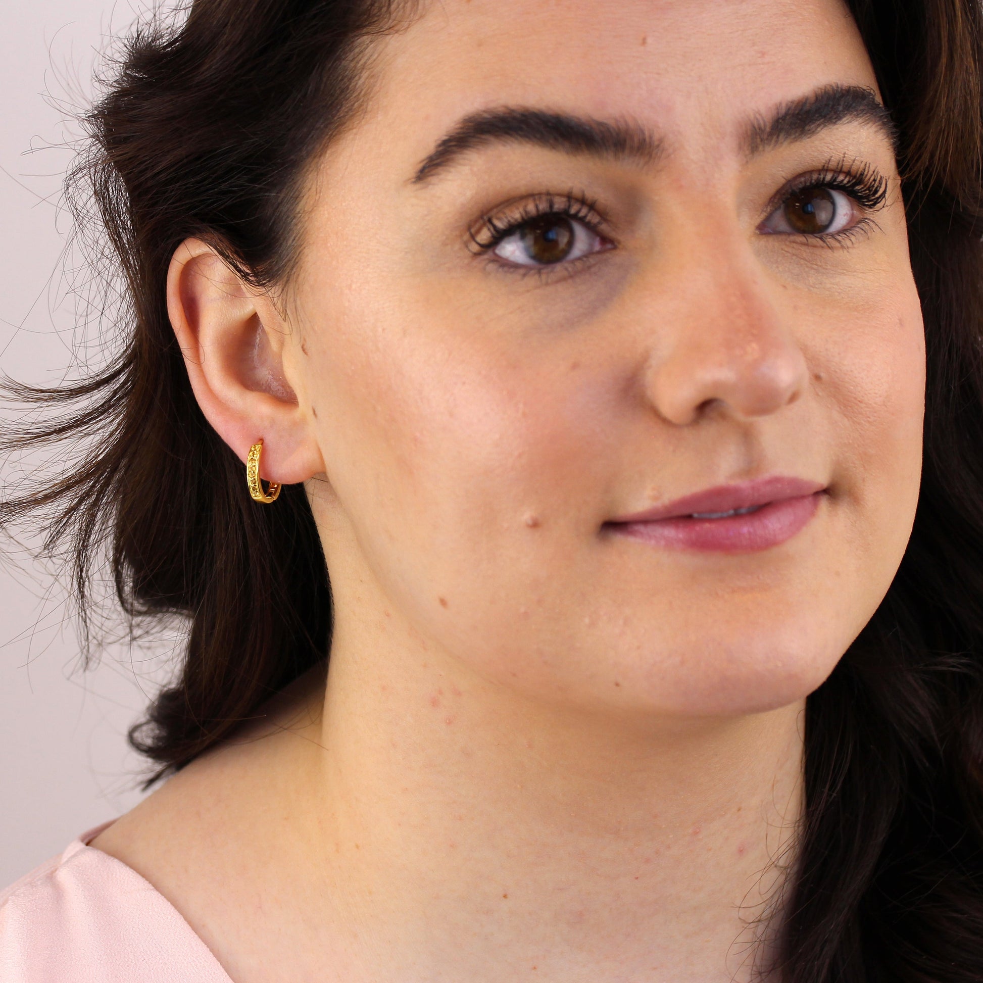 Vergoldet Sterlingsilber Zitrin Pavé Fassung 15mm Creolen Ohrringe