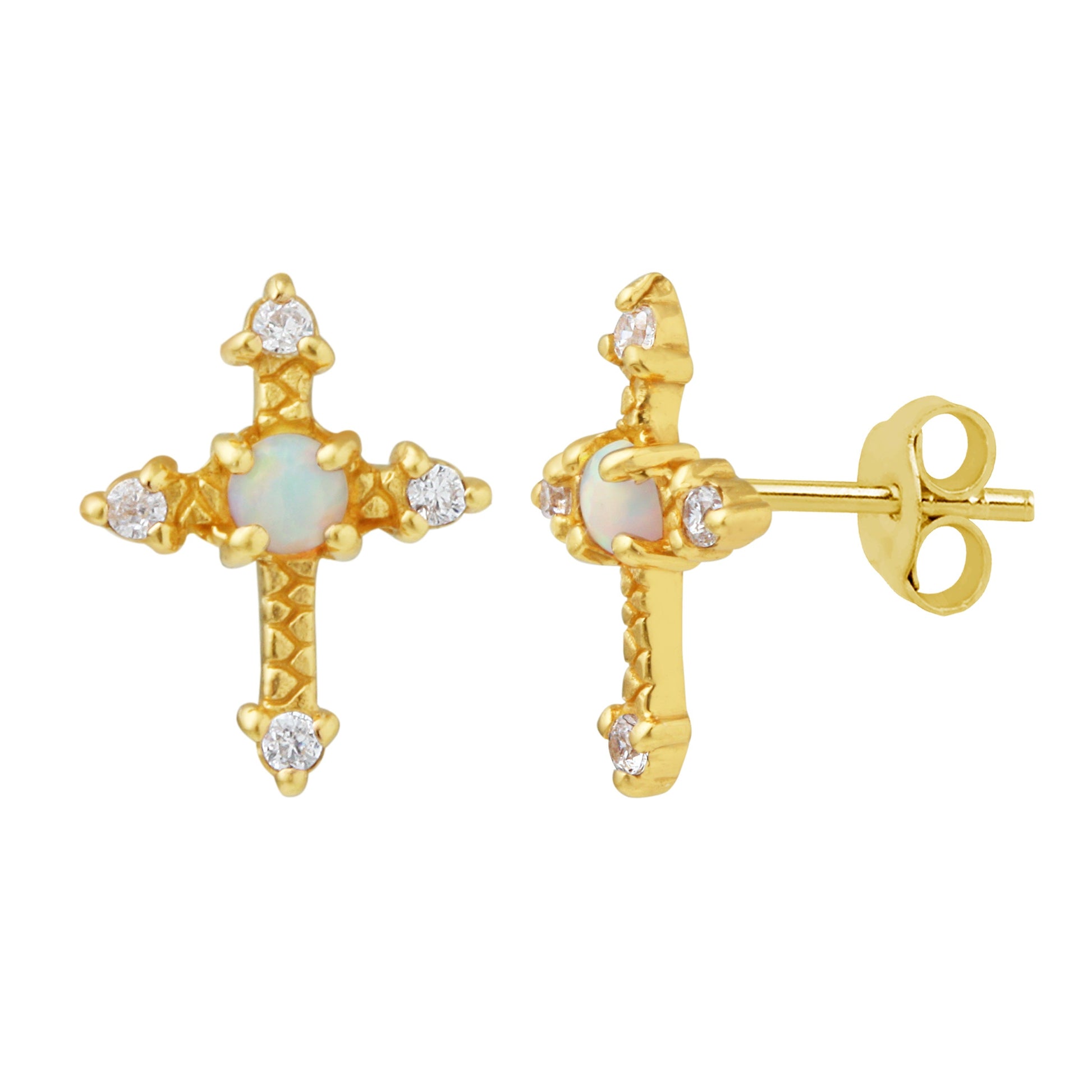Vergoldet Sterlingsilber Kreuz Opal Imitat Ohrstecker