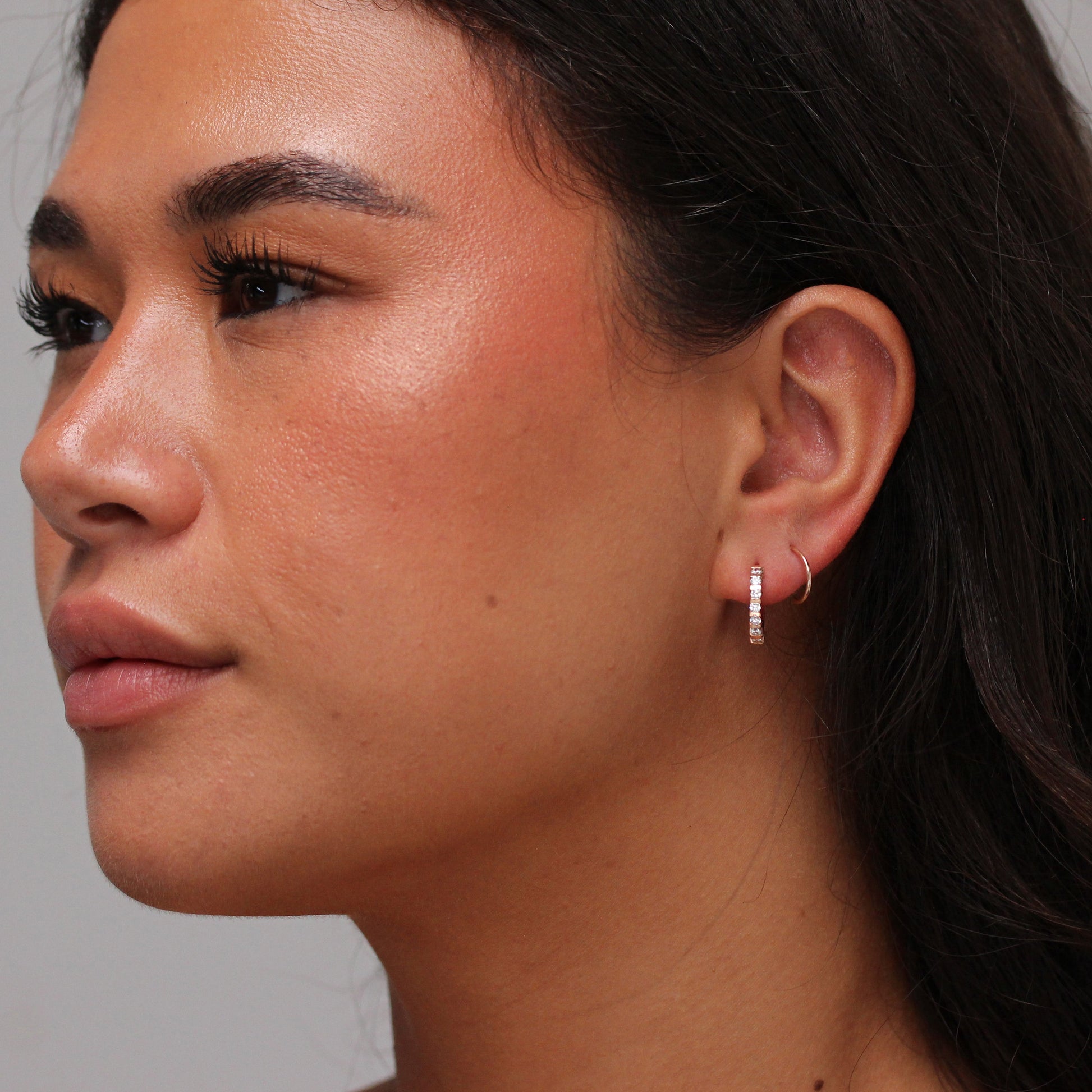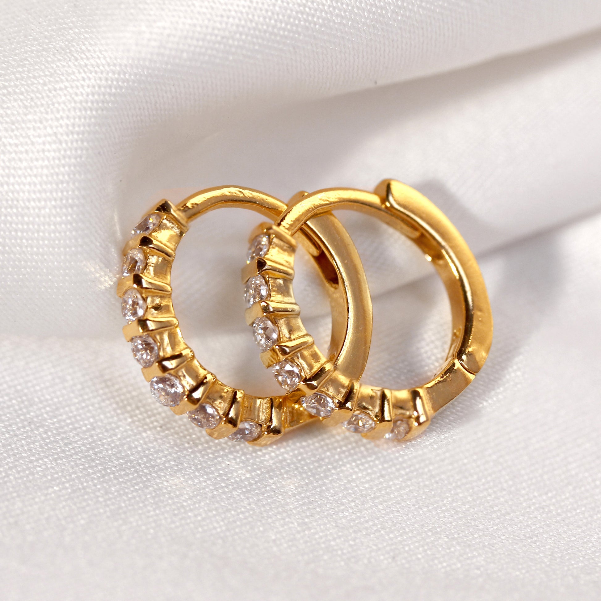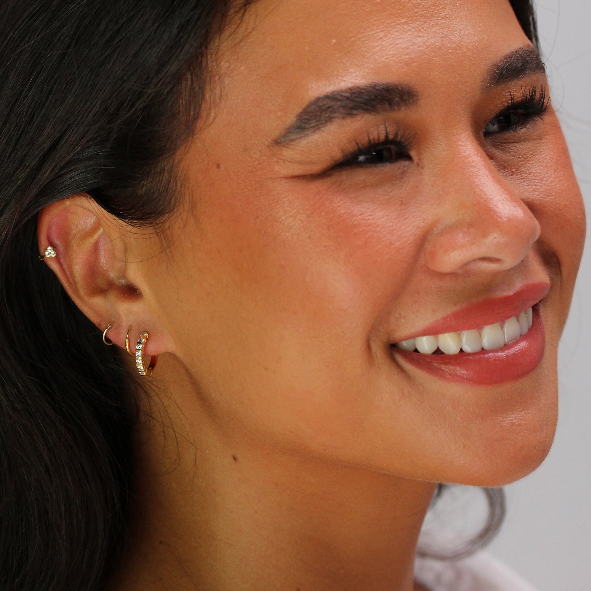 Vergoldet Sterlingsilber CZ Balken Fassung Klappcreolen Ohrringe