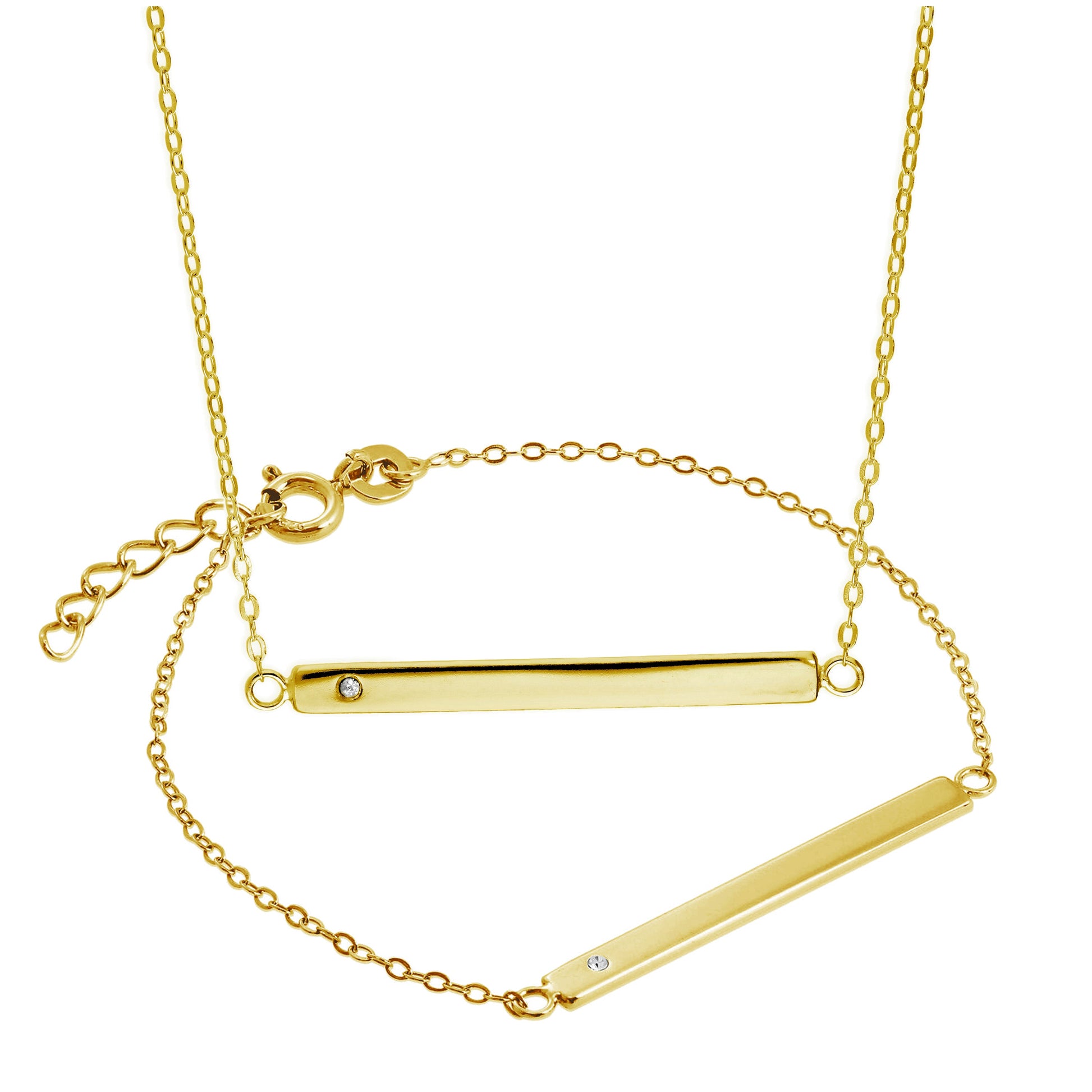 Vergoldet Sterlingsilber CZ Gravierbar Stange Halskette & Namensschild Armband Satz