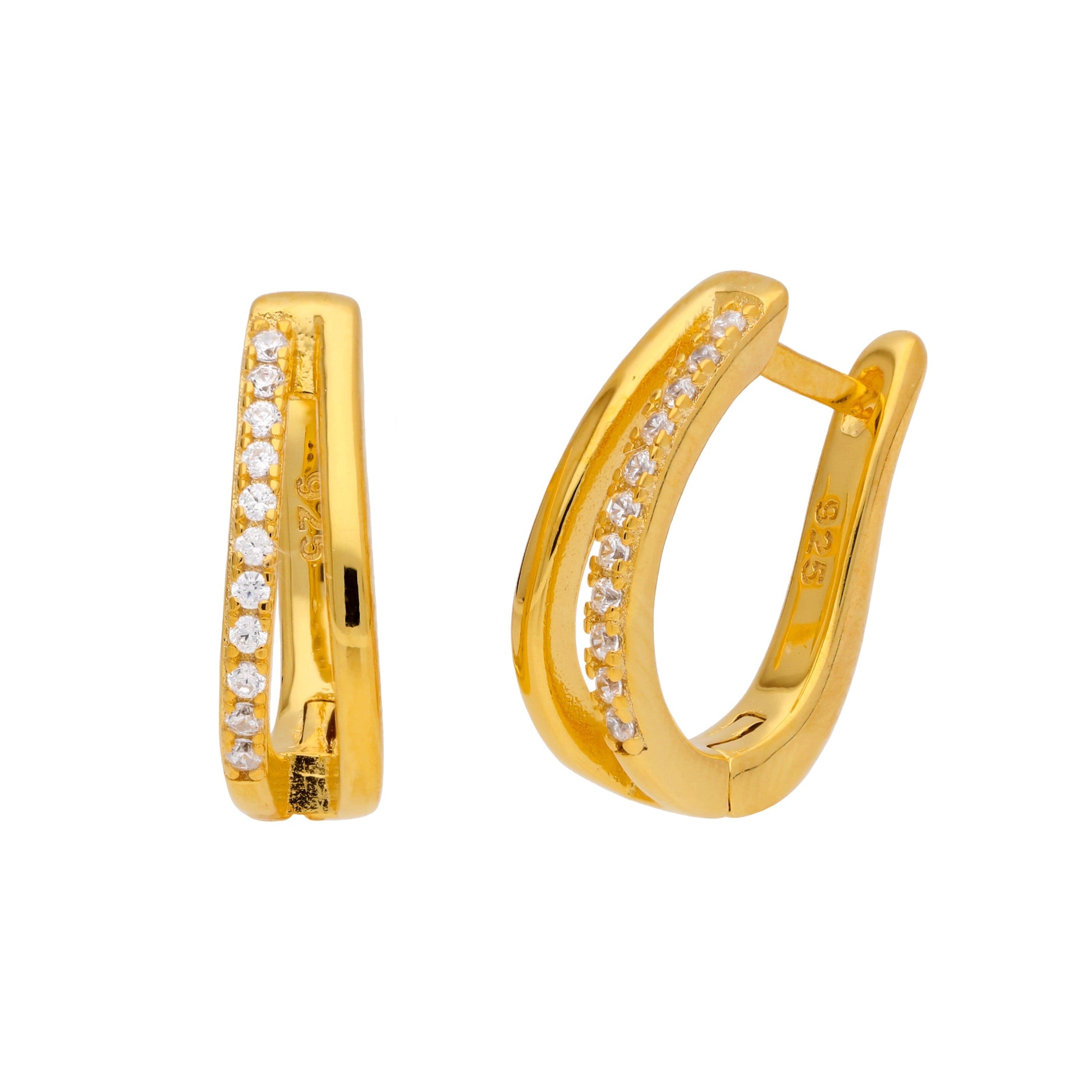 Vergoldet Sterlingsilber Doppel Oval Pavé Fassung CZ Klappcreolen Ohrringe
