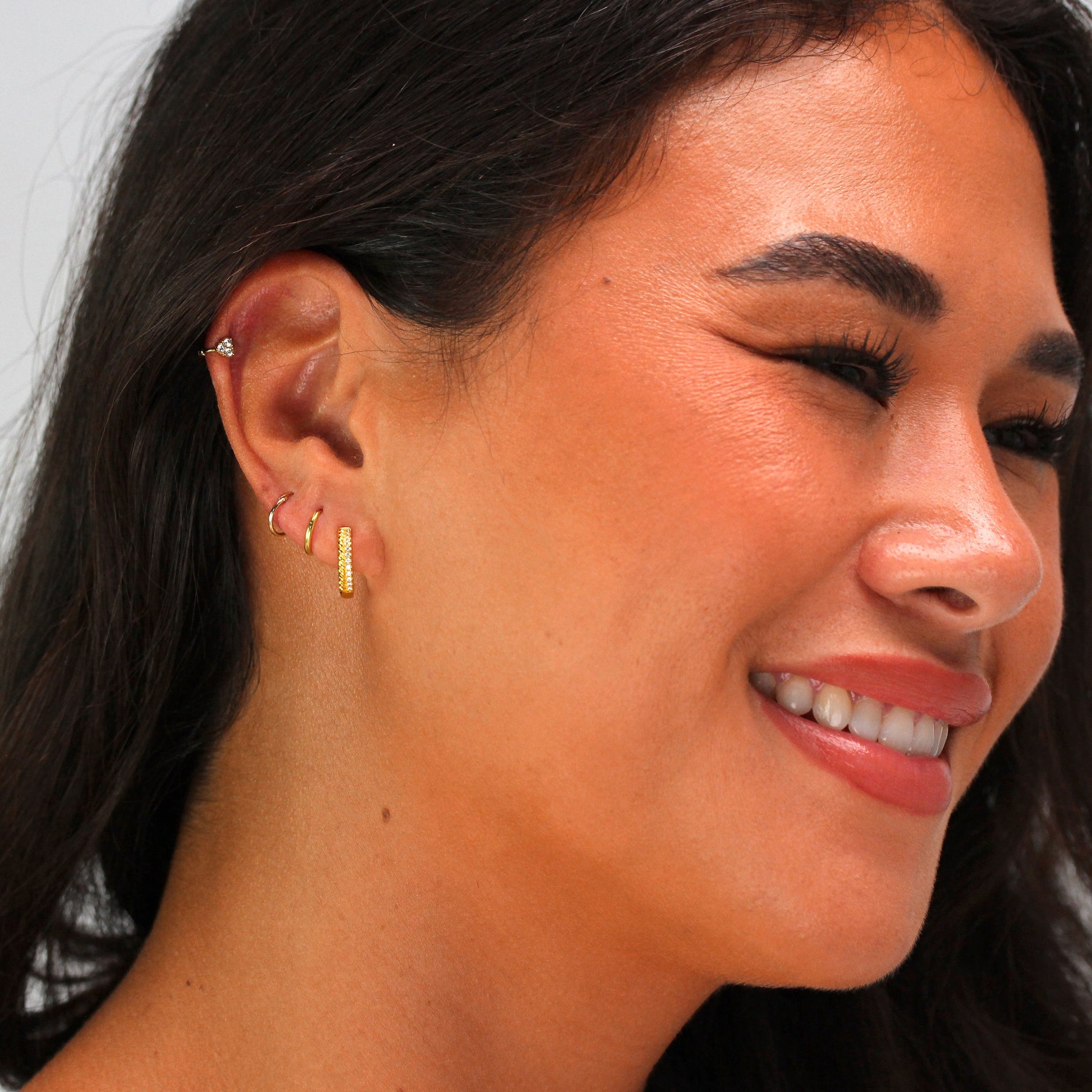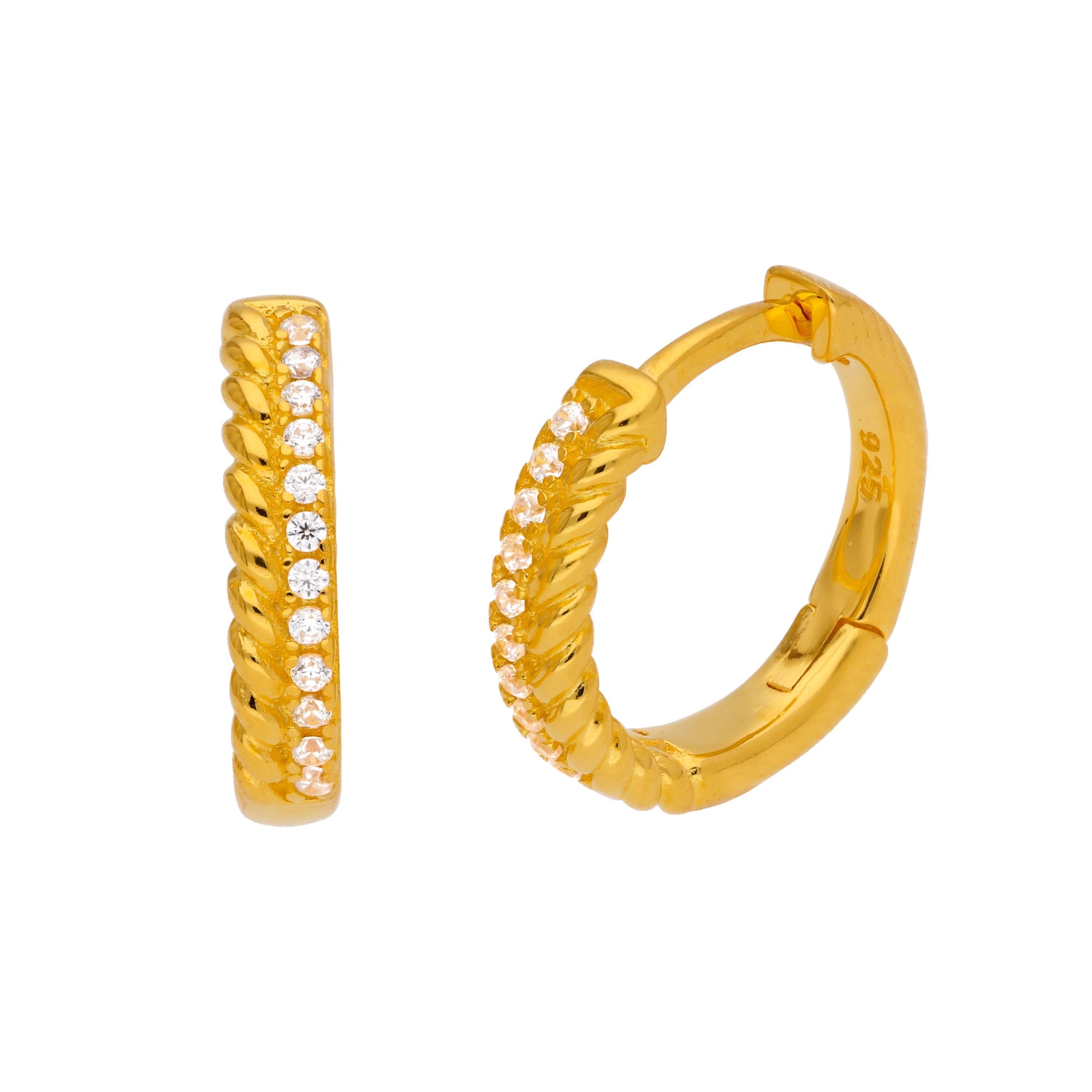 Vergoldet Sterlingsilber Doppel Gedreht Pavé Fassung CZ Klappcreolen Ohrringe
