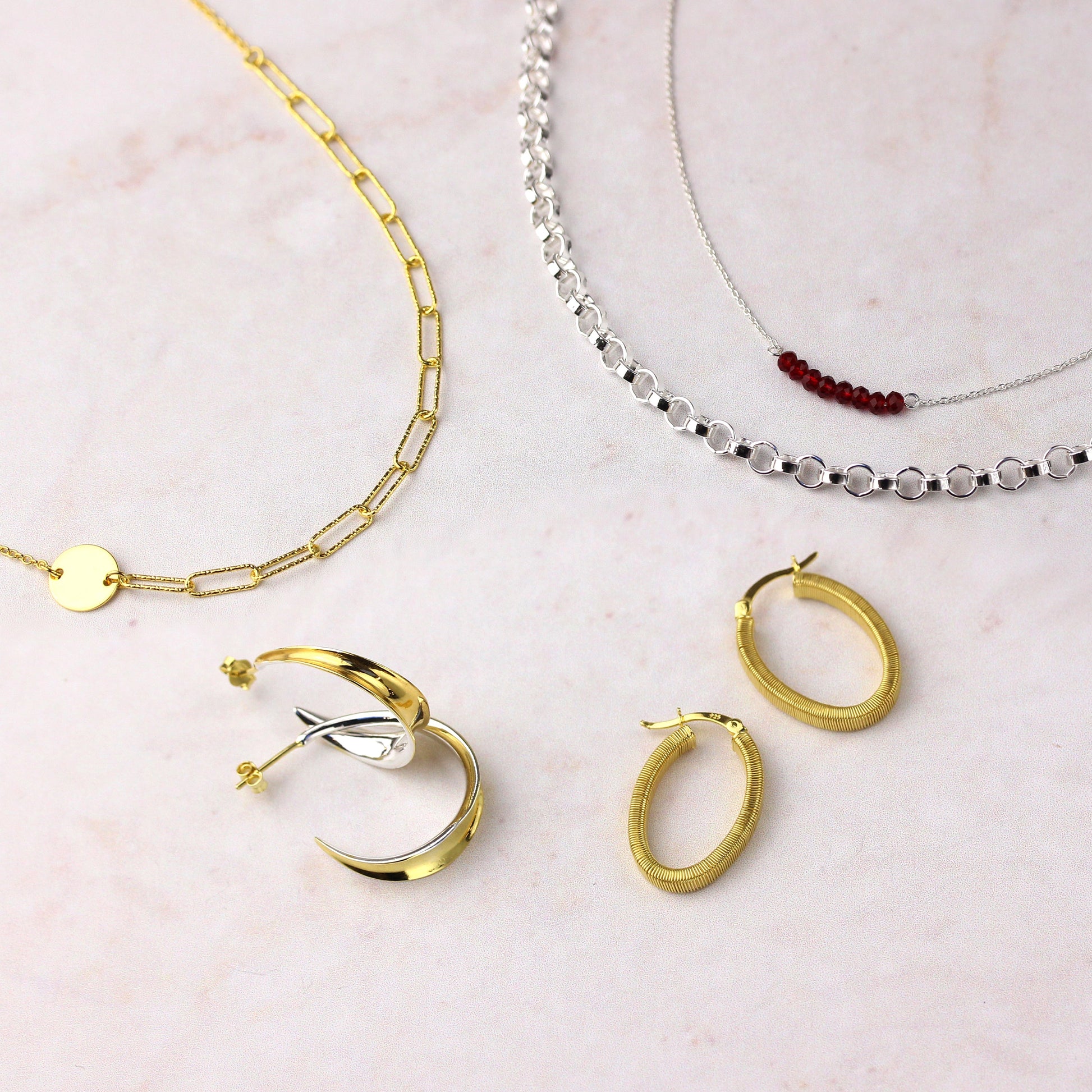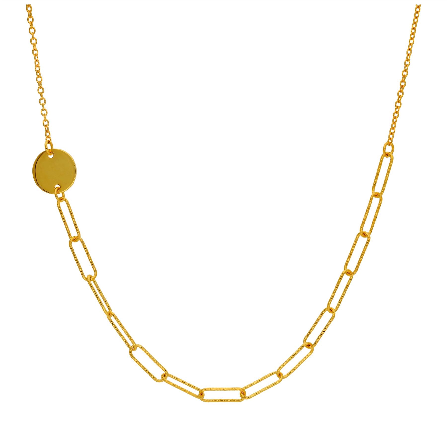 Vergoldete Sterling-Silber-Halskette mit gravierbarer, gehämmerter Scheibe und langen Gliedern