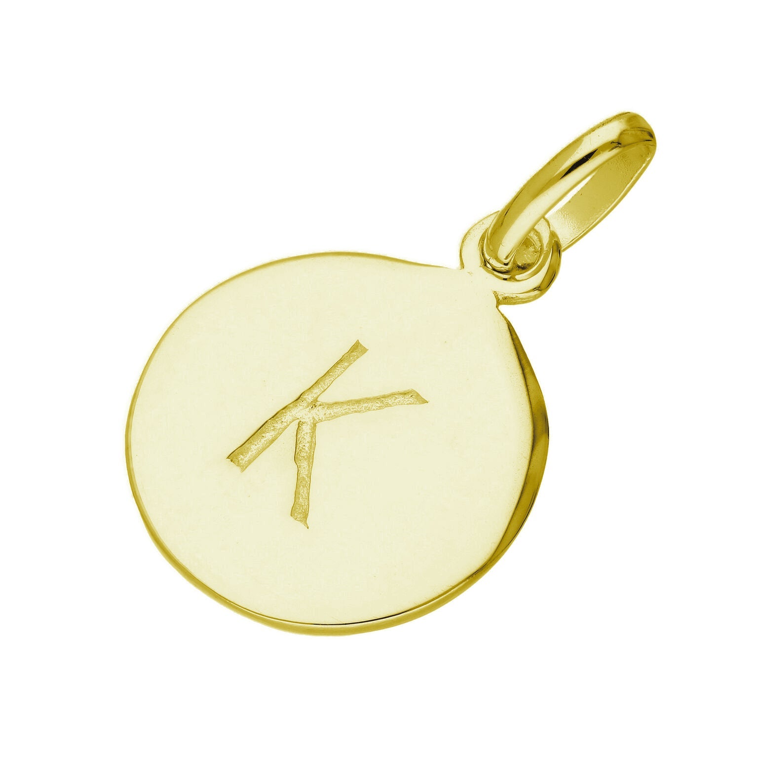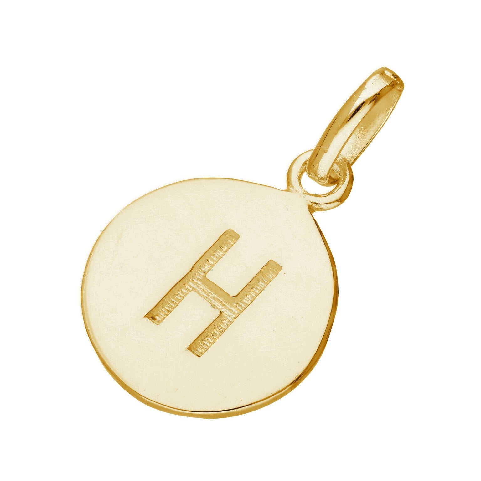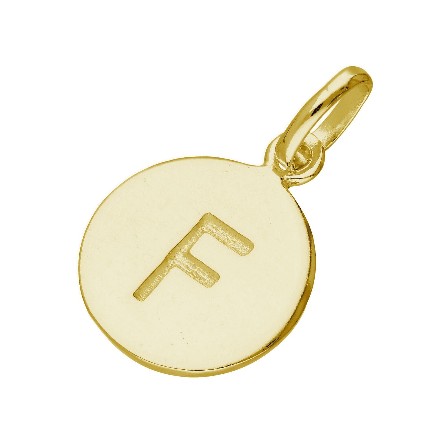 Vergoldetes Sterling Silber gravierbarer runder Buchstabe A-Z Anhänger
