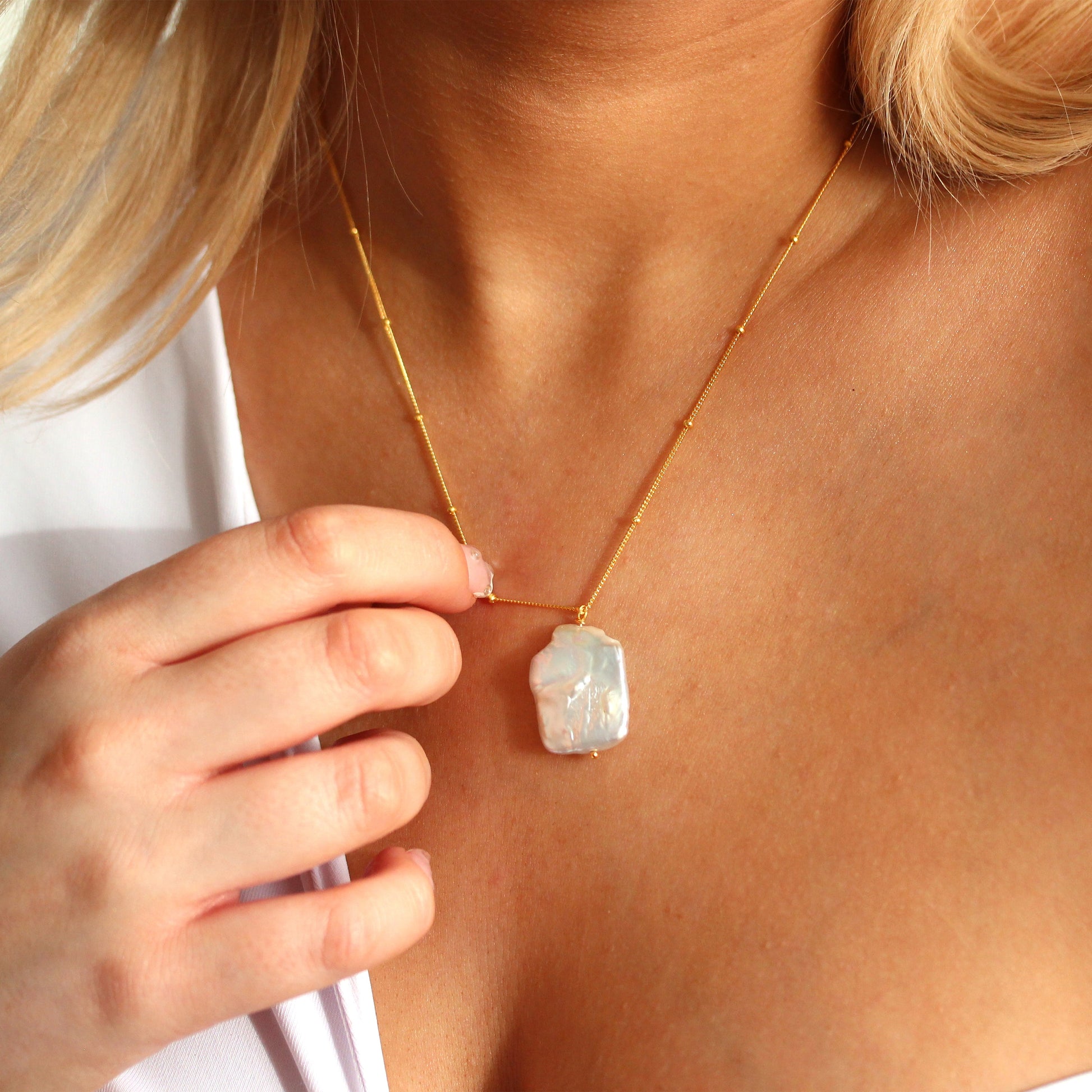 Vergoldet Sterlingsilber Süßwasser Barockperle Halskette 45,5cm