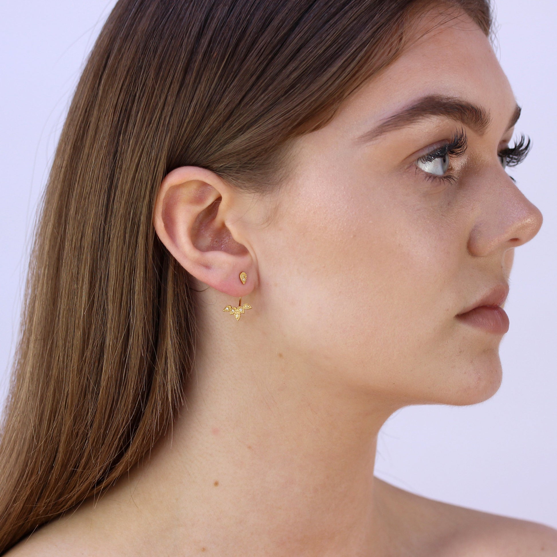 Vergoldet Sterlingsilber Blätter CZ Mantel Ohrstecker