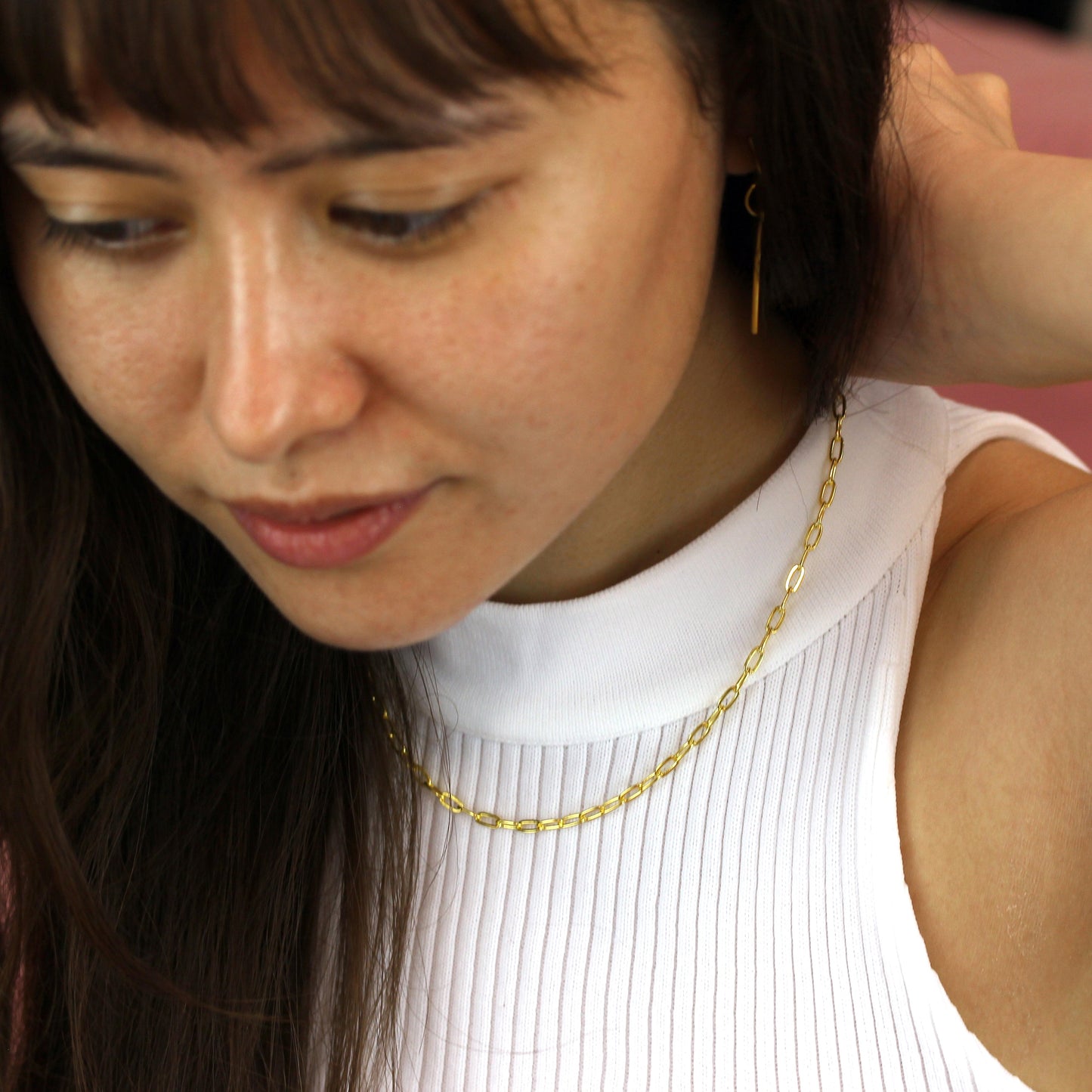 Vergoldet Sterlingsilber Lang Kettenglied Kabel Halskette 45,5cm