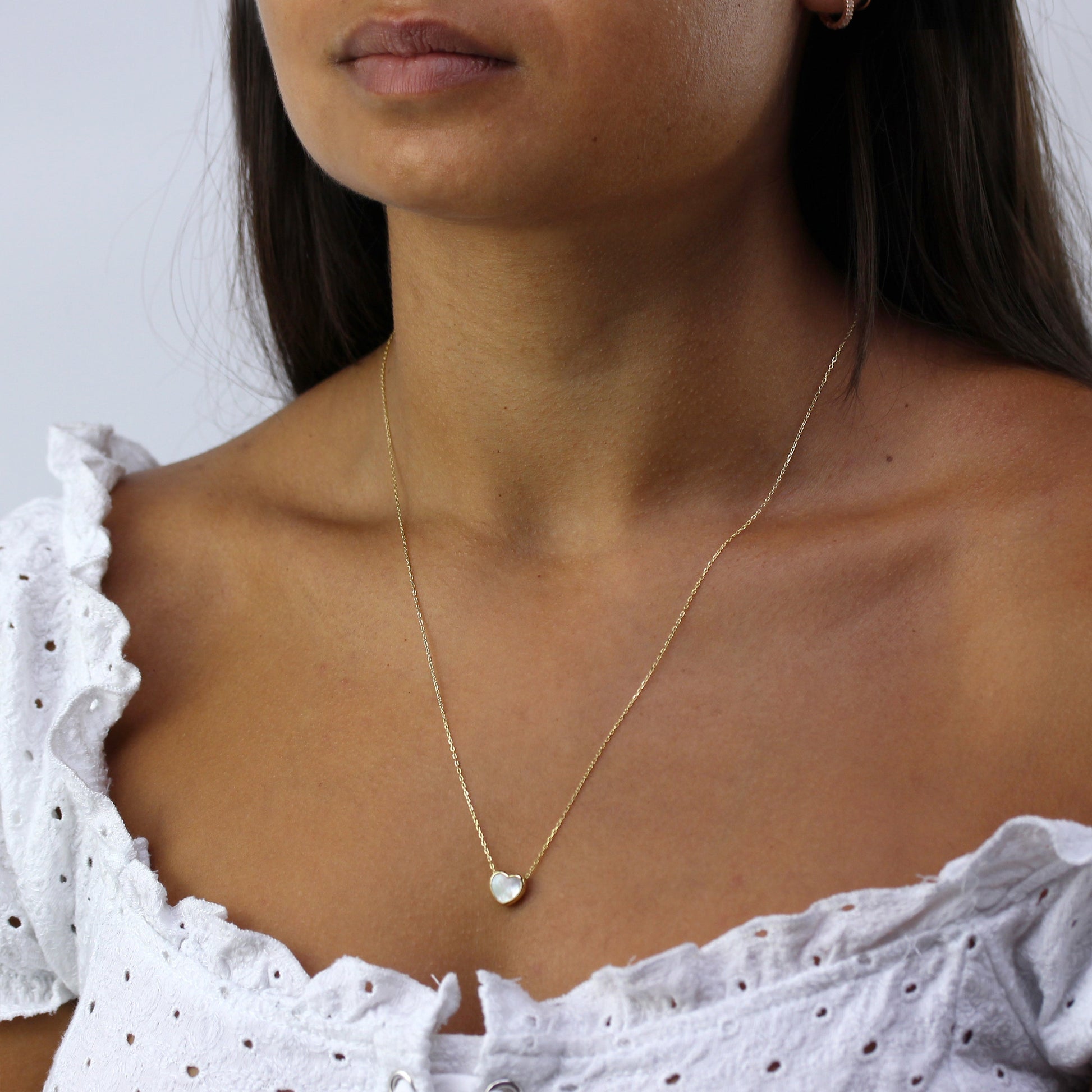 Vergoldet Sterlingsilber Perlmutt Herz Halskette