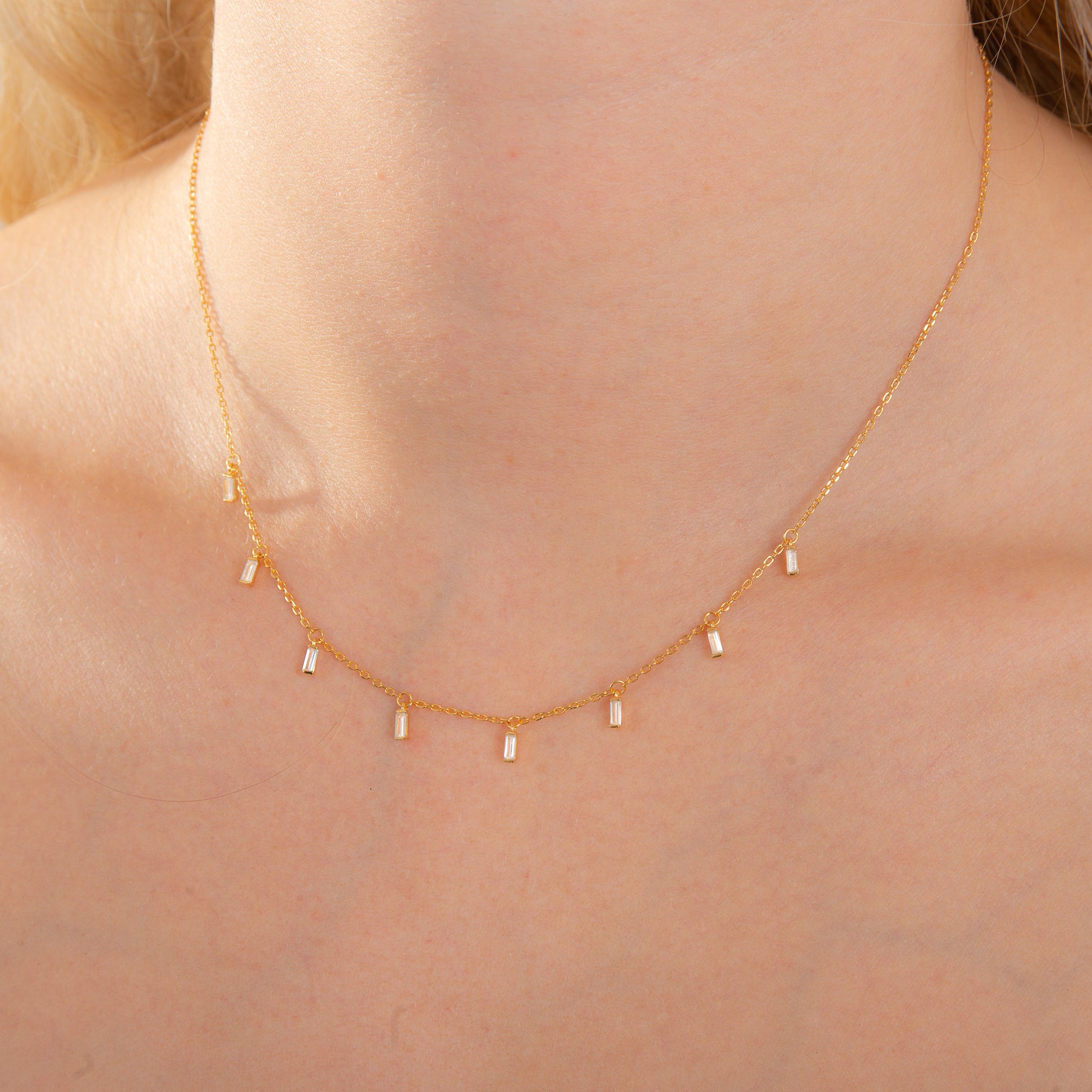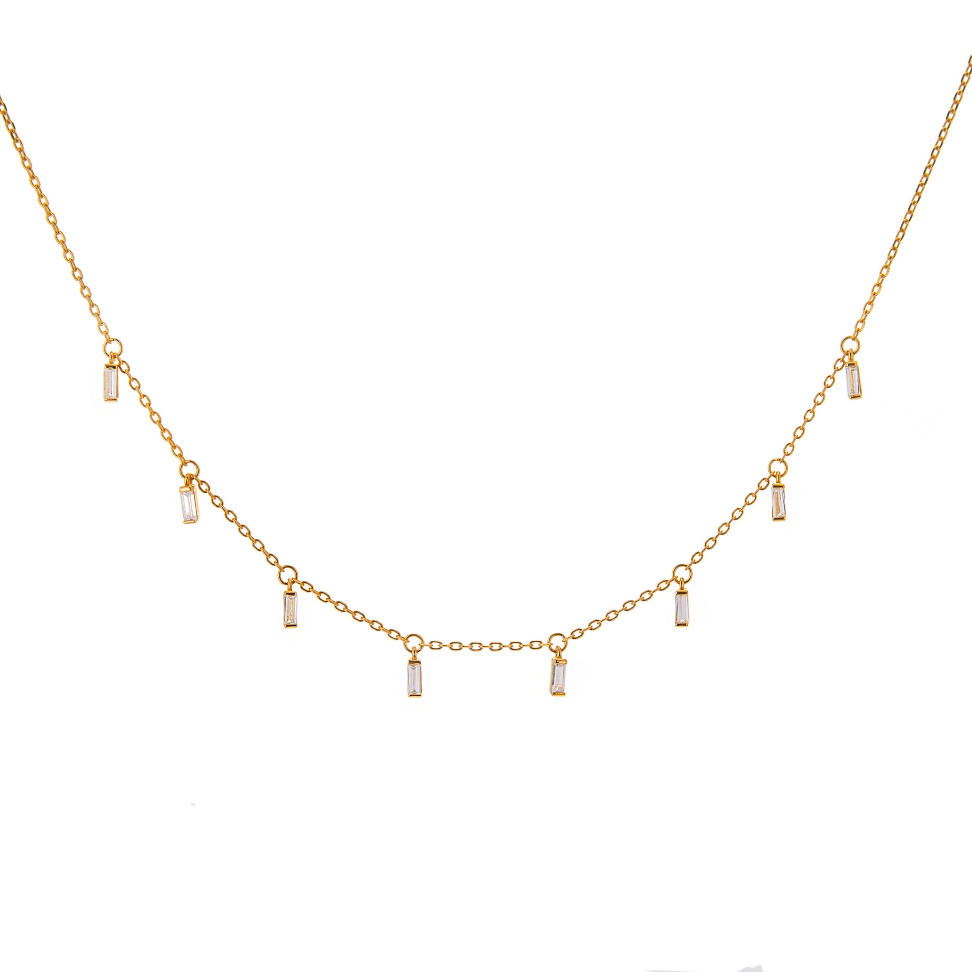 Vergoldet Sterlingsilber Mehrfach Winzig Baguetteschliff CZ Kristall Hänger Halskette