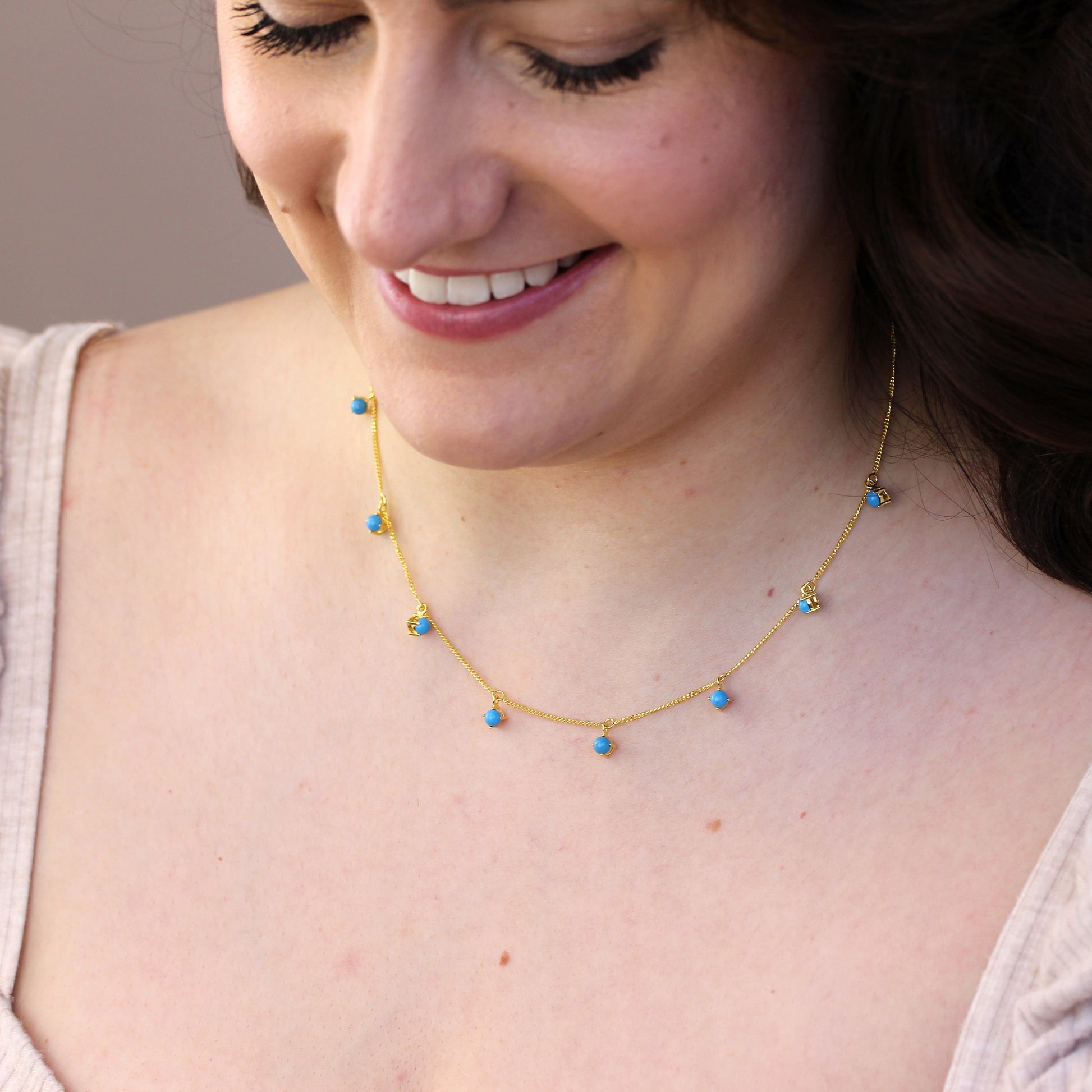 Vergoldet Sterlingsilber Mehr Türkis CZ Dezember Halskette