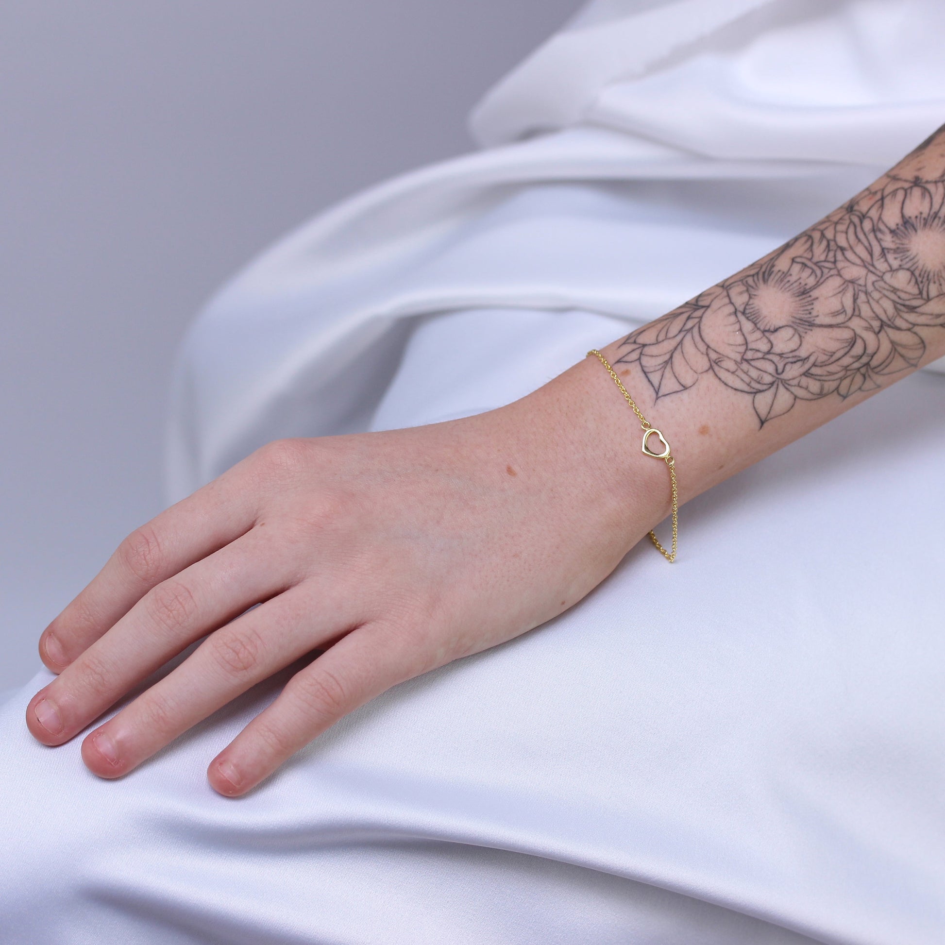 Vergoldet Sterlingsilber Offen Herz Rolo Kette Armband