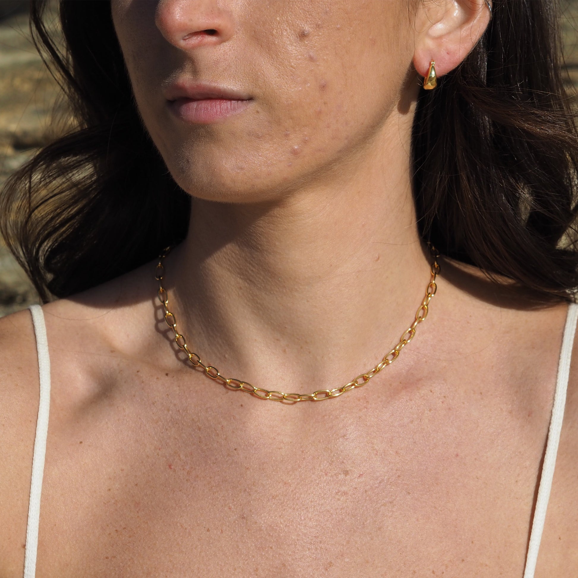 Halskette aus vergoldetem Sterlingsilber mit ovalem Belcher-Anhänger – 45 cm