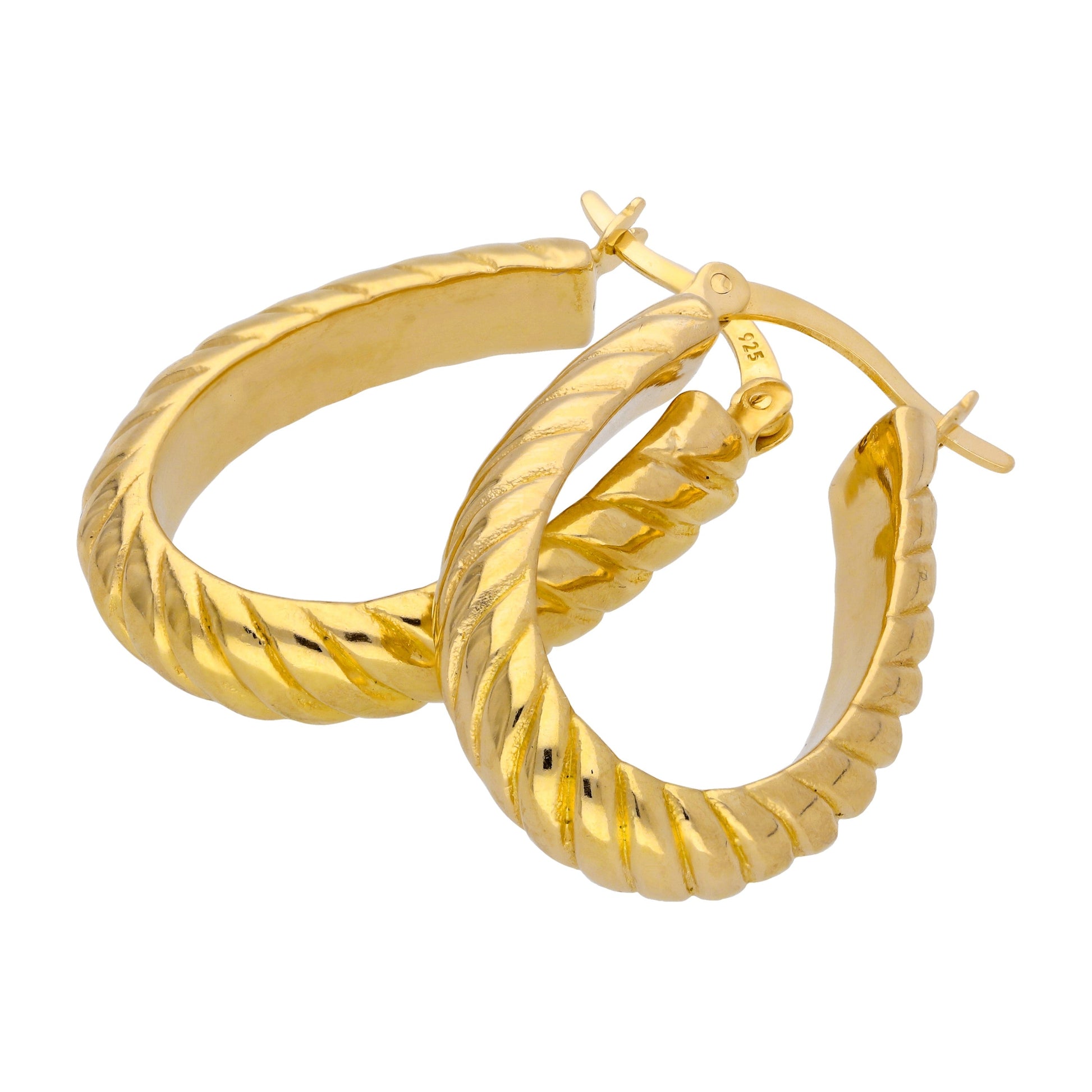 Vergoldet Sterlingsilber Oval Gedreht 18mm Creolen Ohrringe