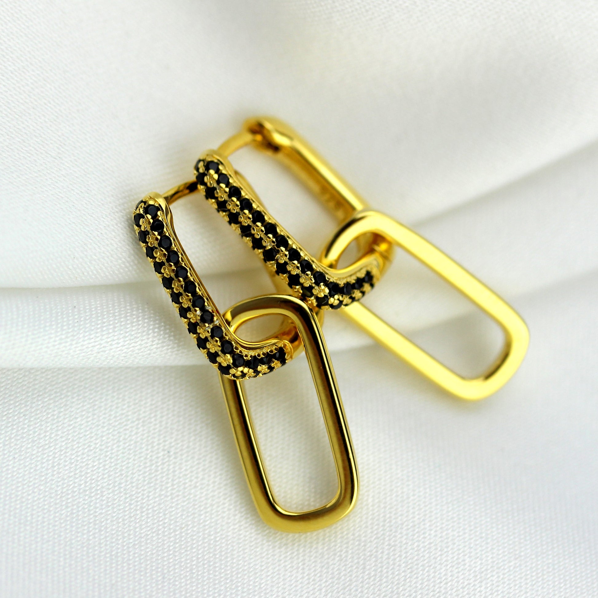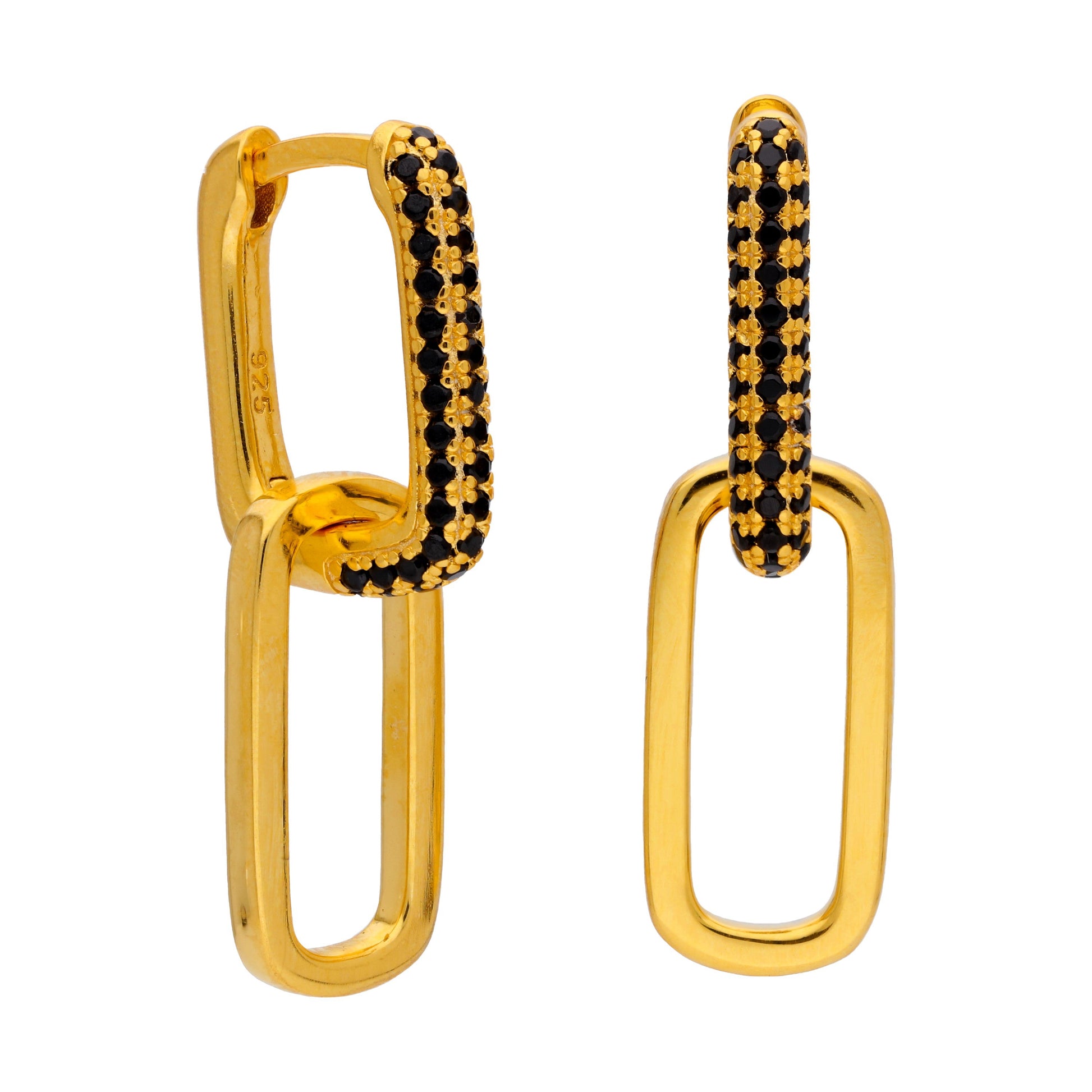 Goldplattierte Sterling Silber Ovat Schwarz CZ Gliederohrringe