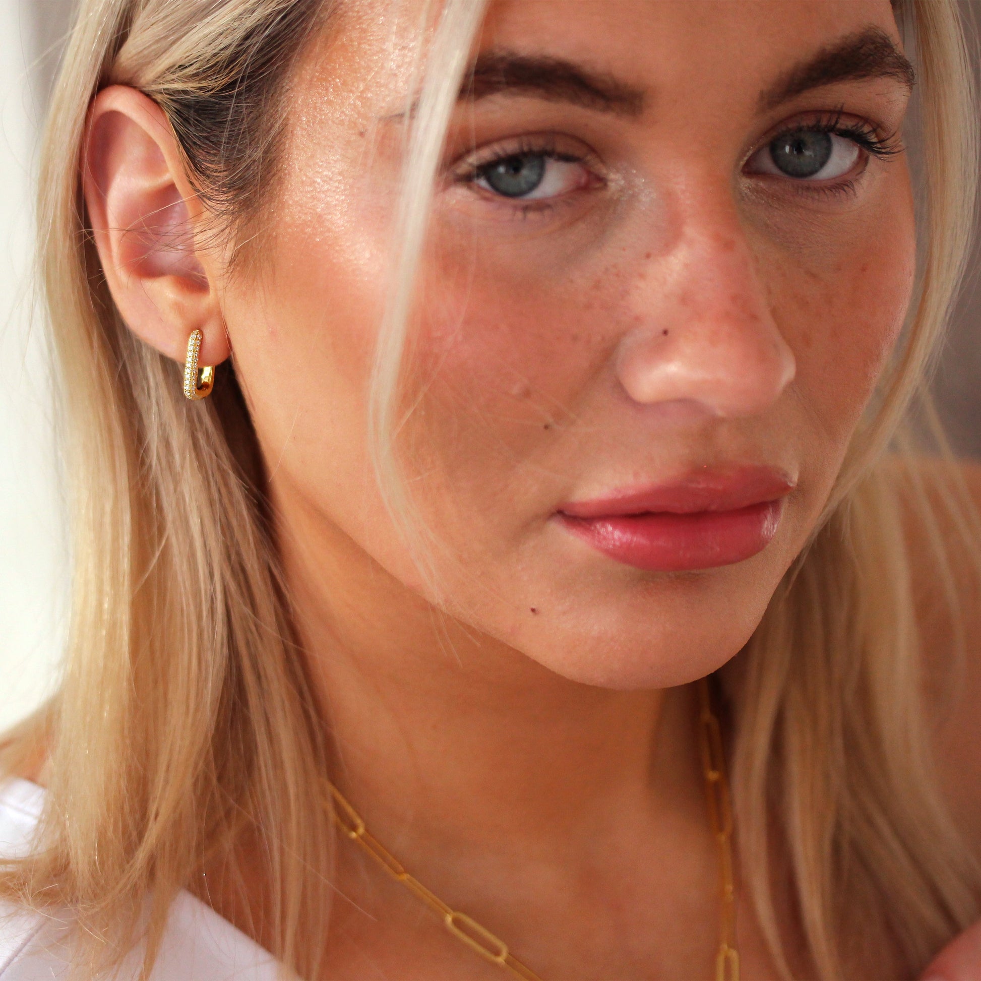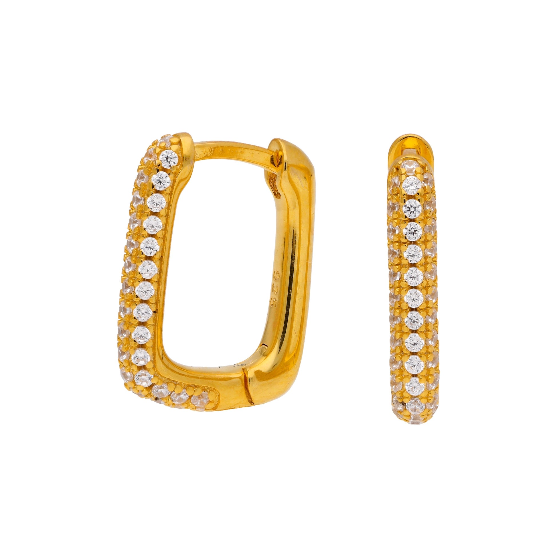 Vergoldet Sterlingsilber Eiförmig CZ 15mm Creolen Ohrringe