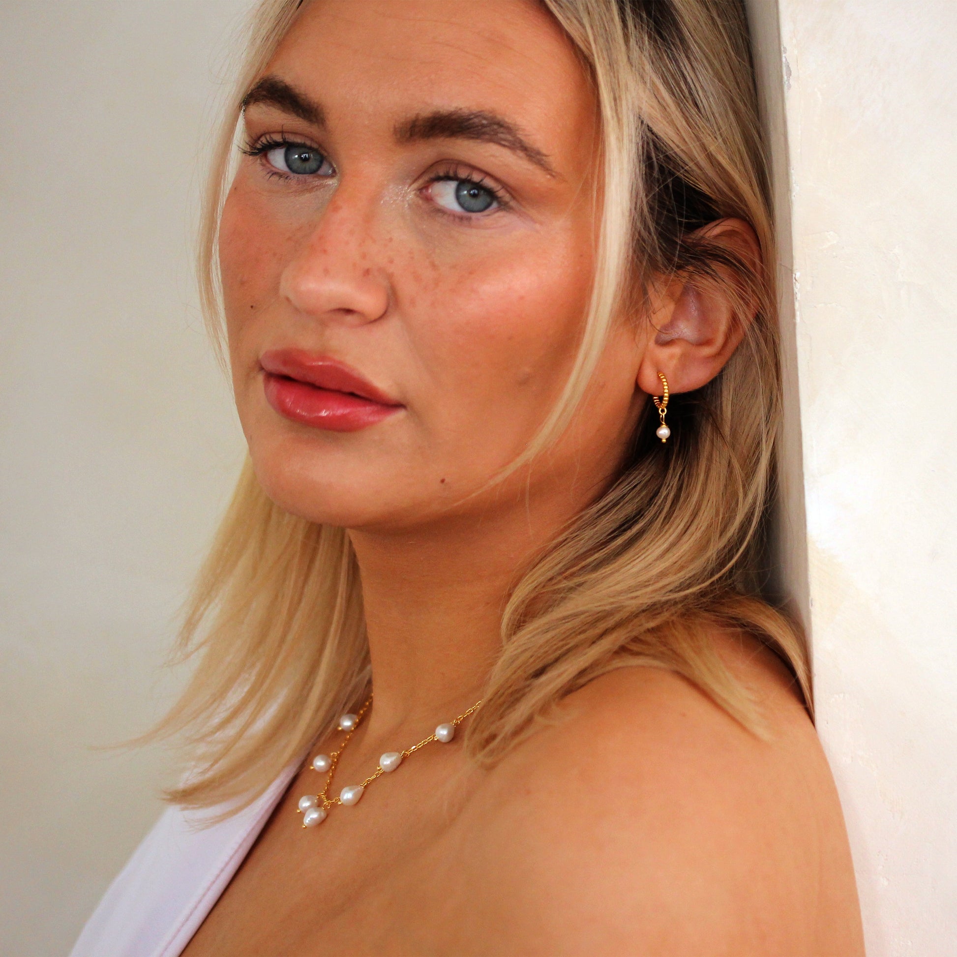 Vergoldet Sterlingsilber Perle Kügelchen Creolen Ohrstecker