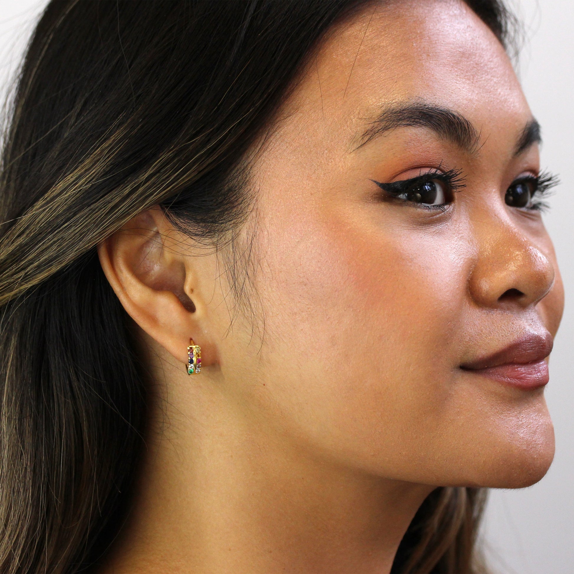 Vergoldet Sterlingsilber Regenbogen CZ 13mm Klappcreolen Ohrringe