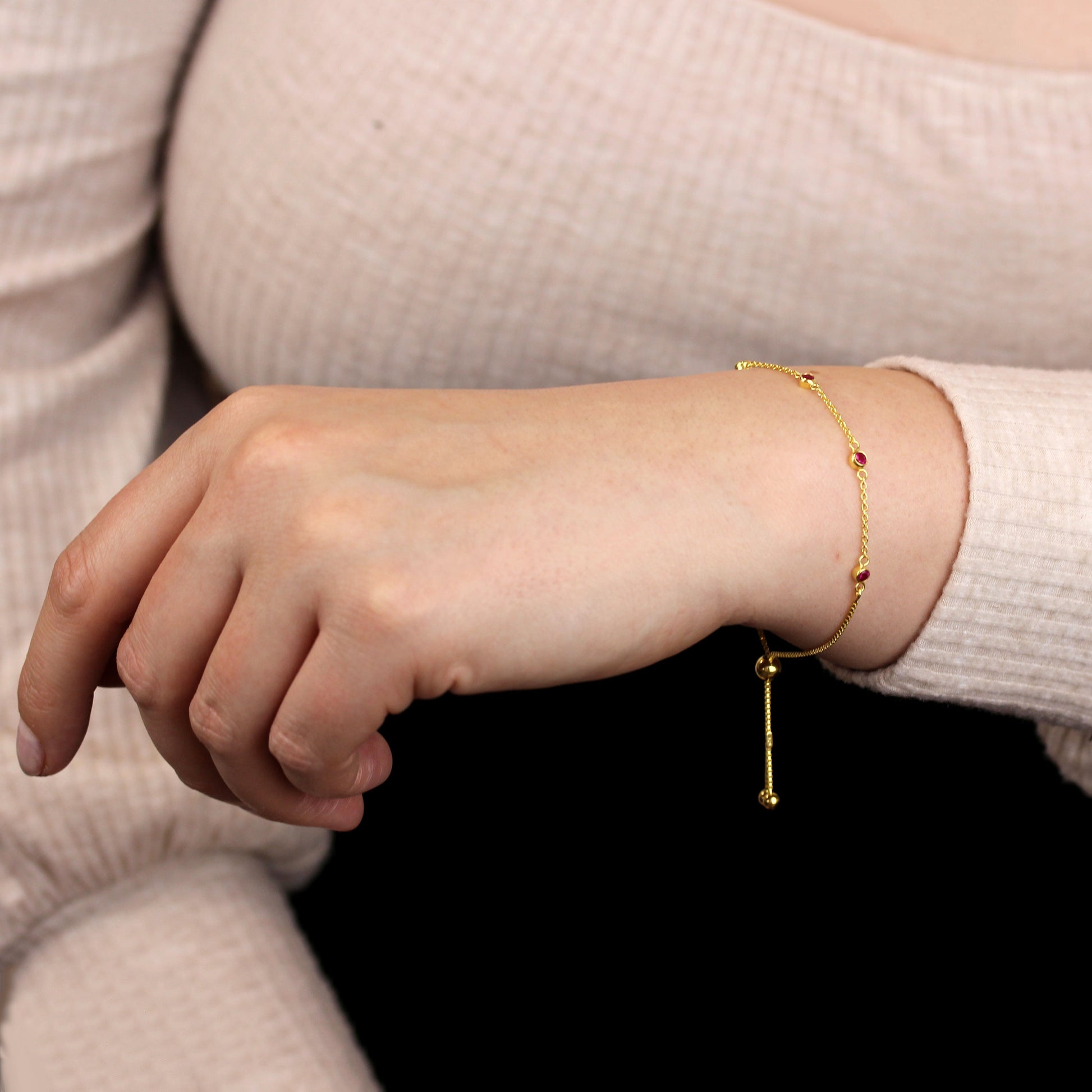 Vergoldet Sterlingsilber Rubin CZ Verstellbar Armband
