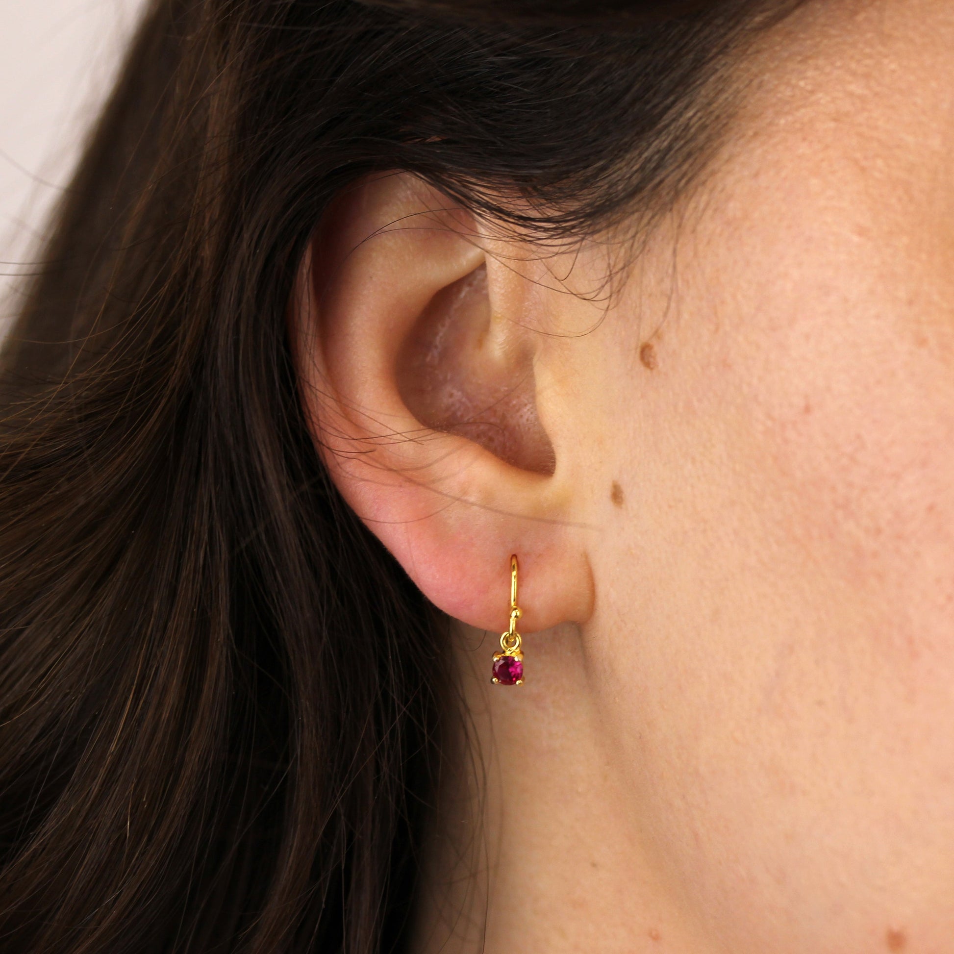 Vergoldet Sterlingsilber Rubin CZ Juli Ohrhänger