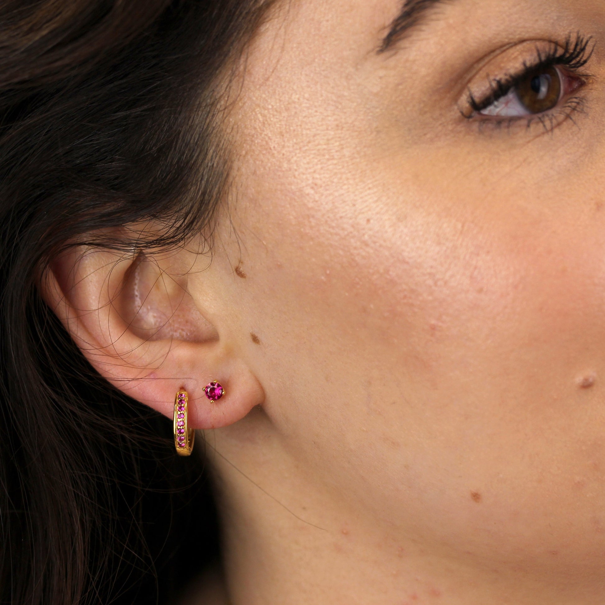 Vergoldet Sterlingsilber Rubin CZ Pavé Fassung 15mm Creolen Ohrringe