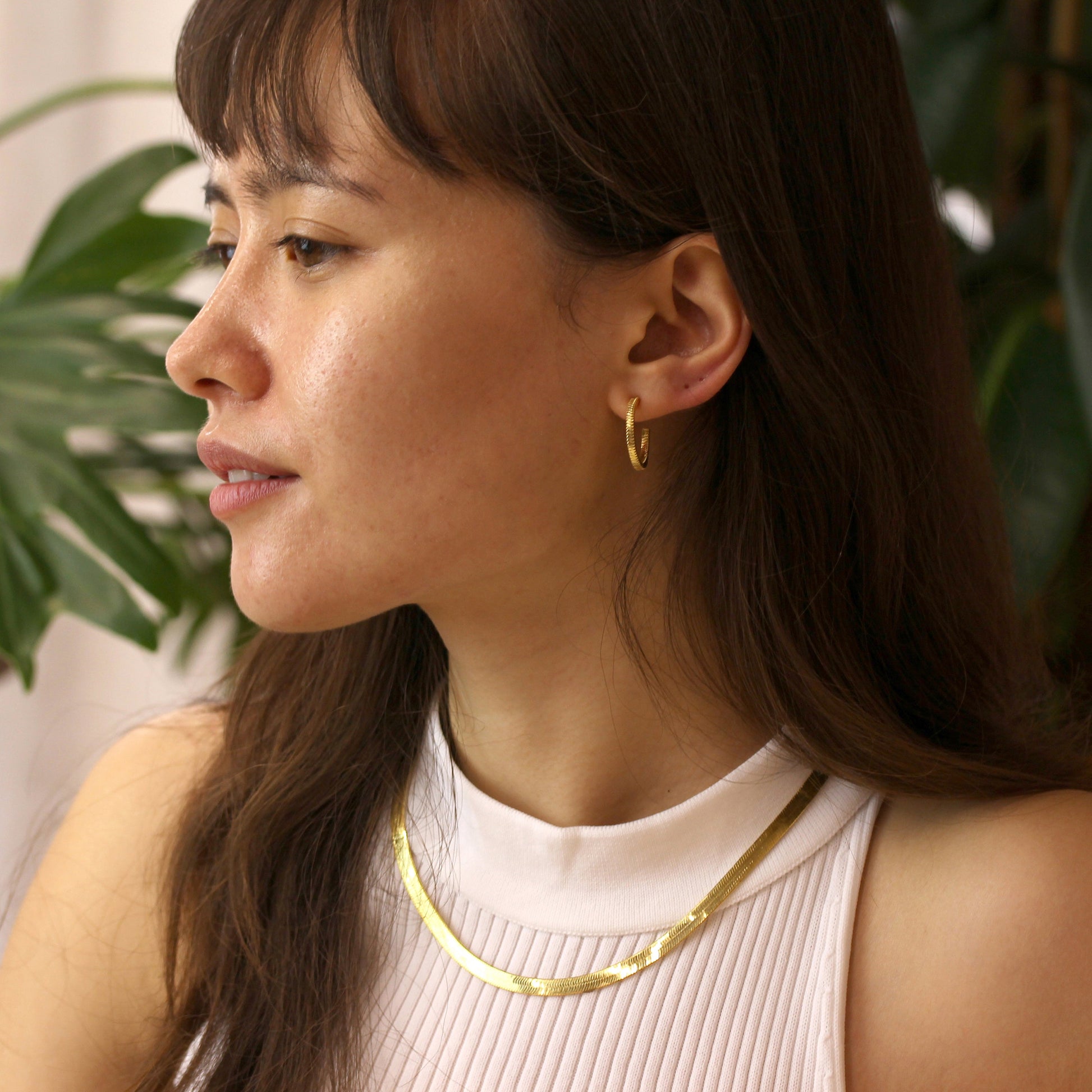 Vergoldet Sterlingsilber Quadratisch Schlangenkette 20mm Creolen Ohrstecker