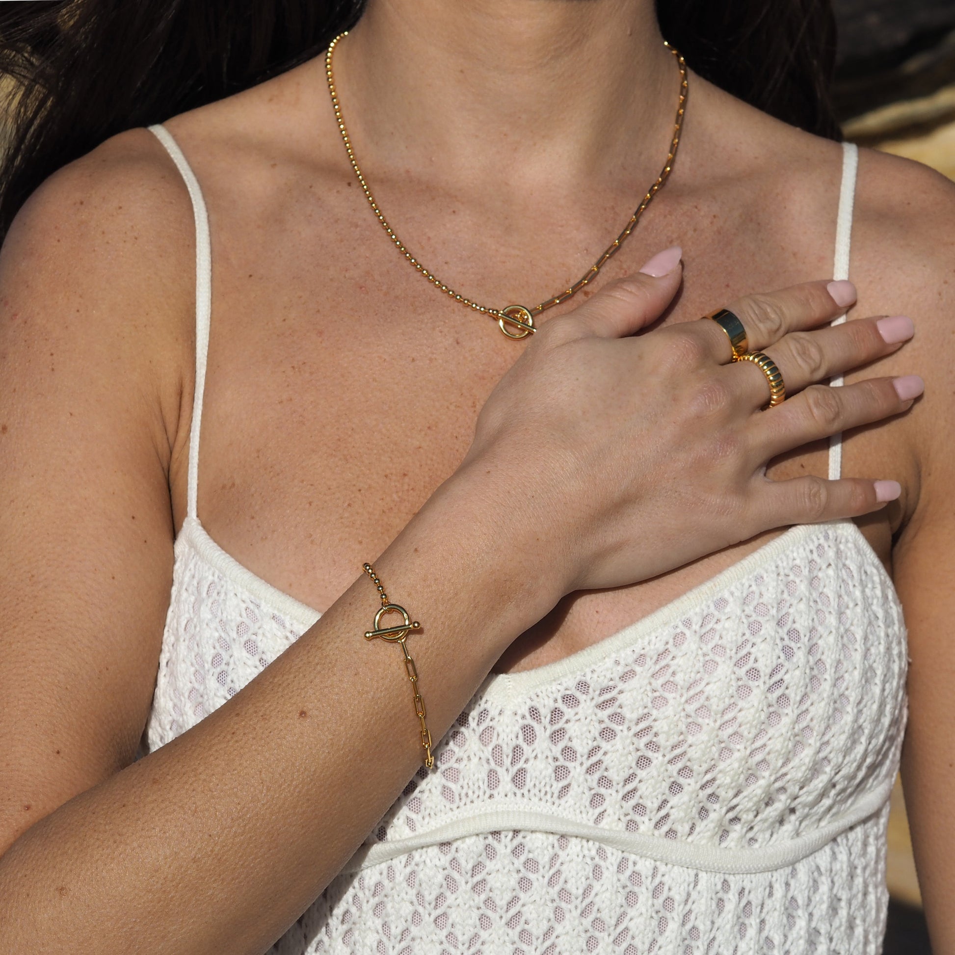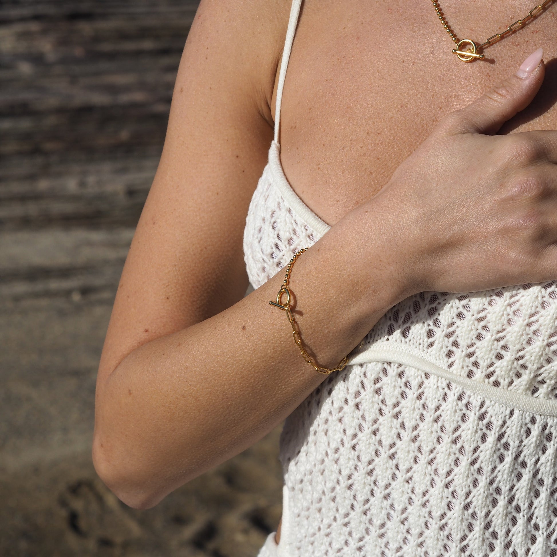 Vergoldetes Sterling Silber T-Bar Paperclip Kugelkette Armband
