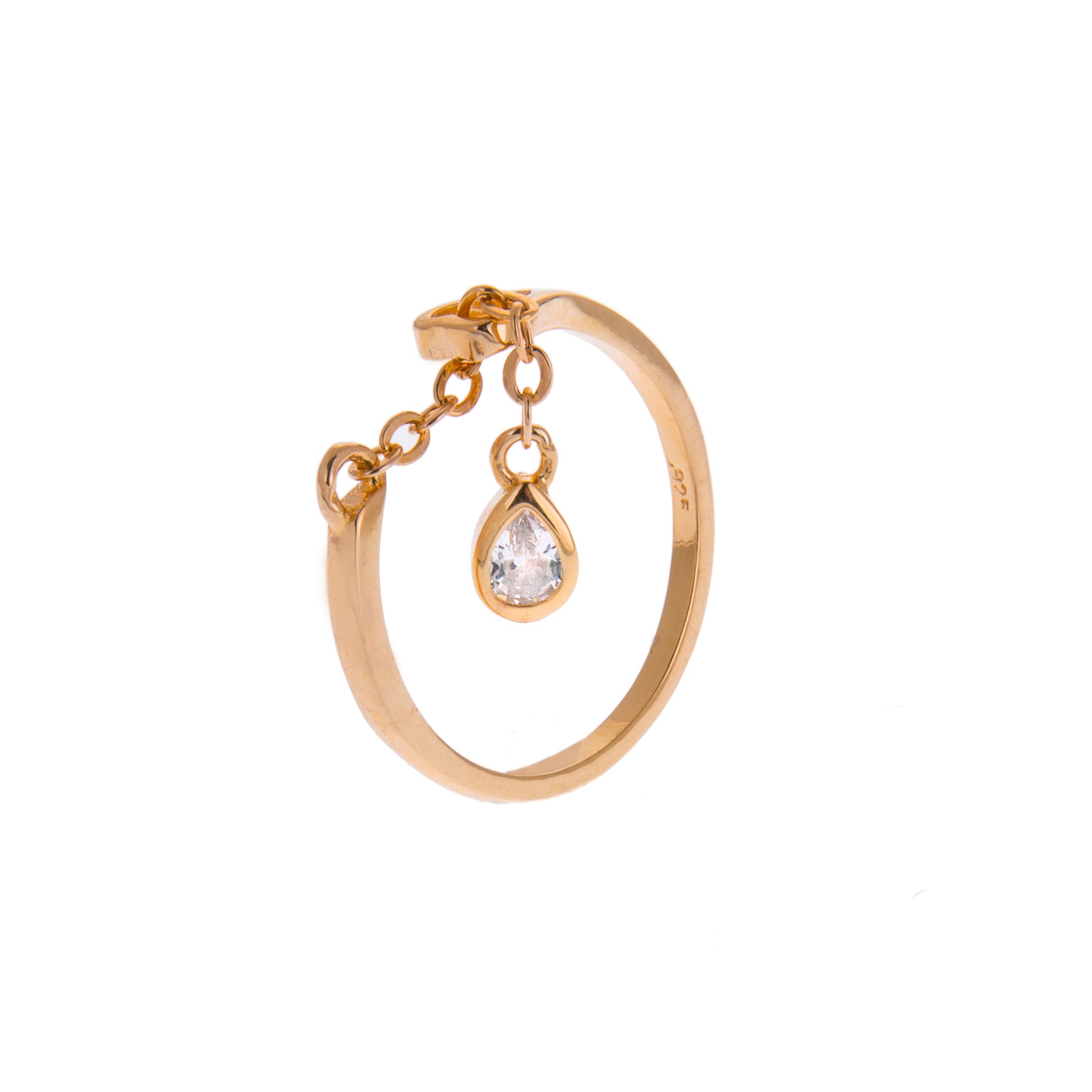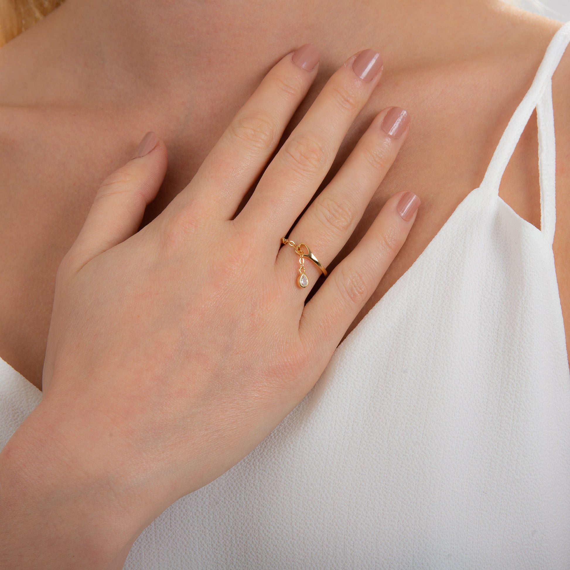 Vergoldet Sterlingsilber Tränentropfen Klar CZ Kettenhänger Baumel Größenverstellbar Ring