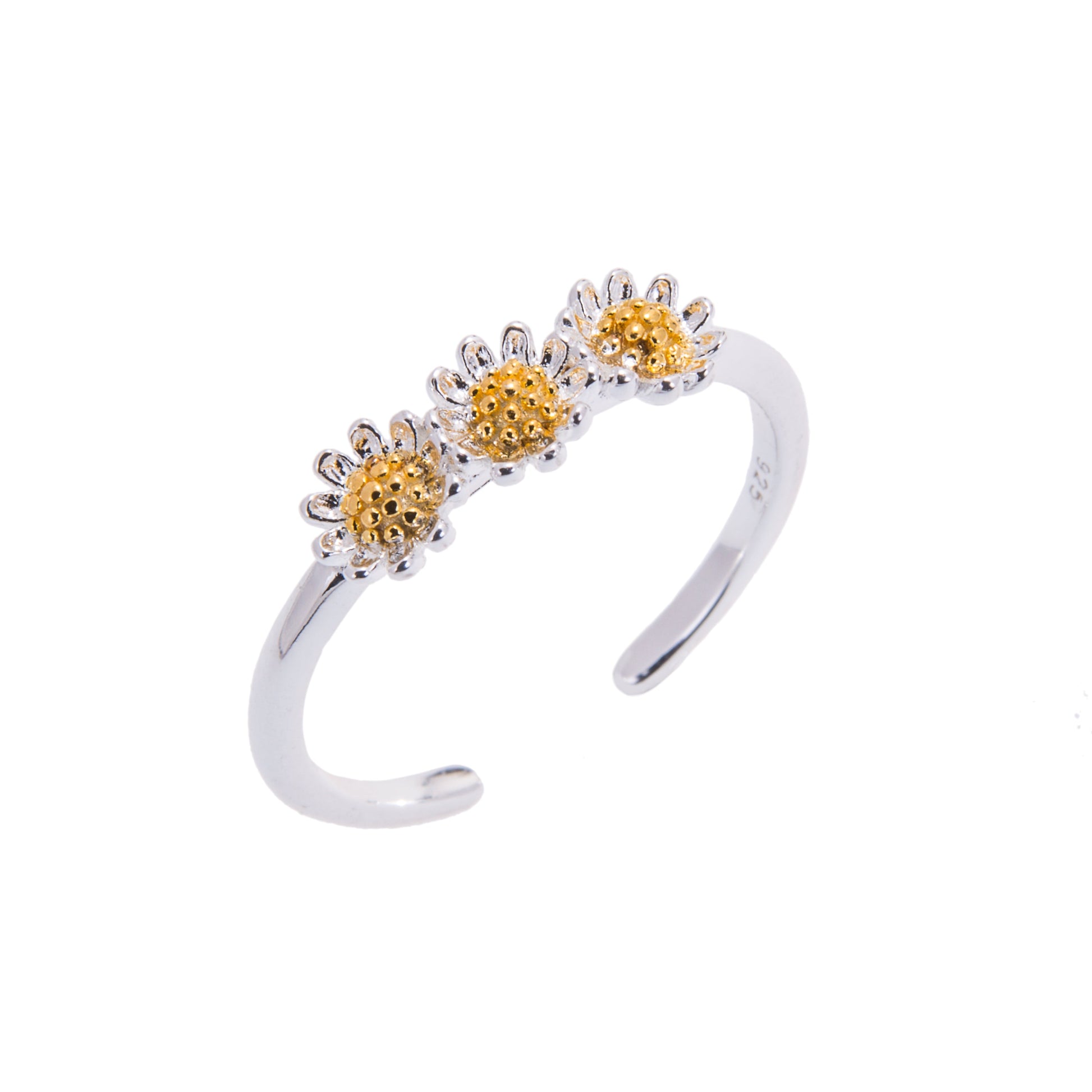 Goldgetaucht Sterlingsilber Dreifach Gänseblümchen Größenverstellbarer Ring