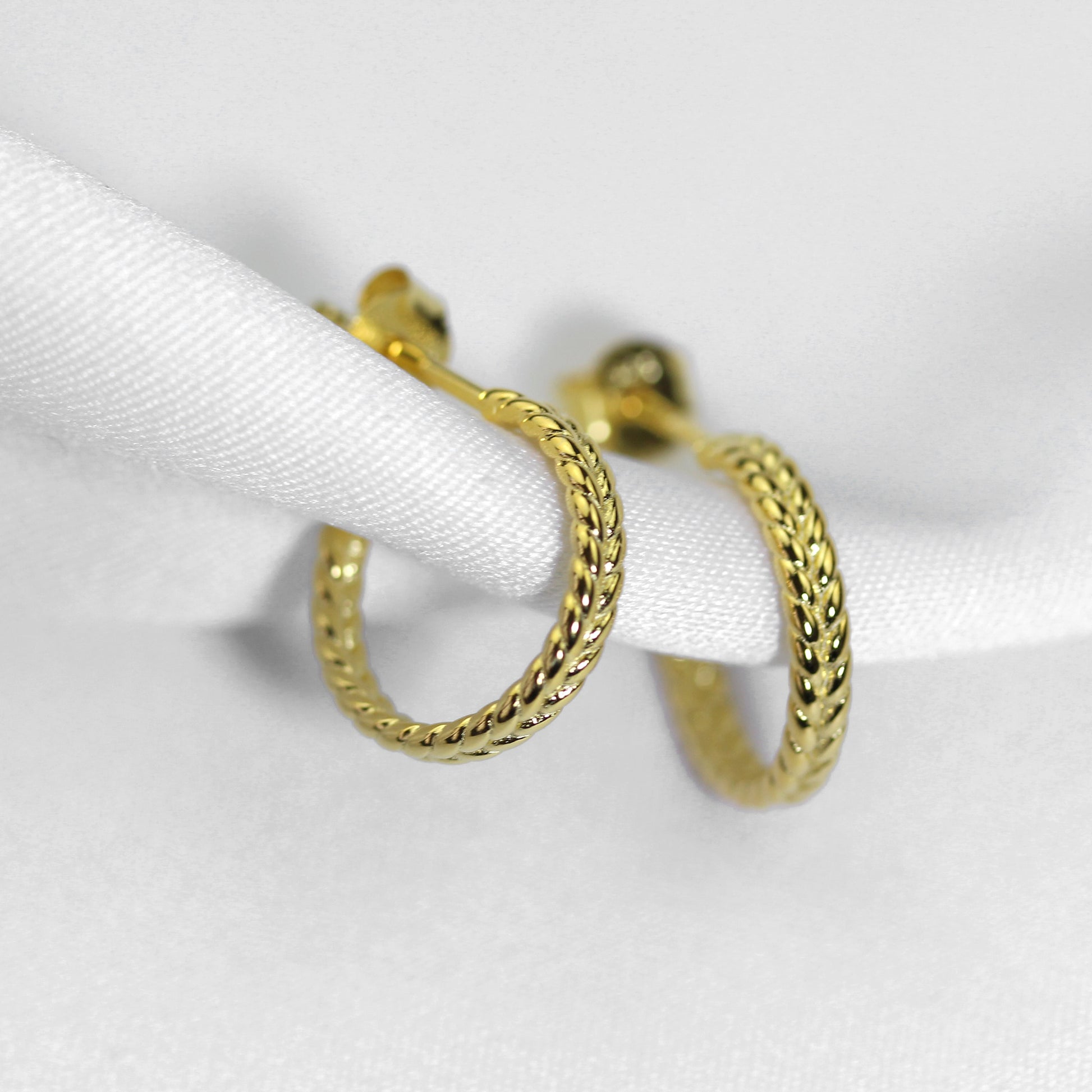 Vergoldet Sterlingsilber Gedreht Offen 14mm Creolen Ohrstecker