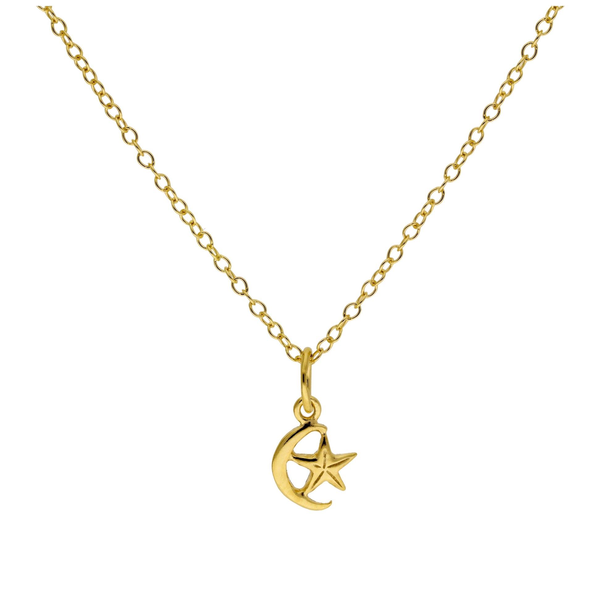 Winzig Vergoldet Sterlingsilber Halbmond & Stern Halskette 14 - 56cm
