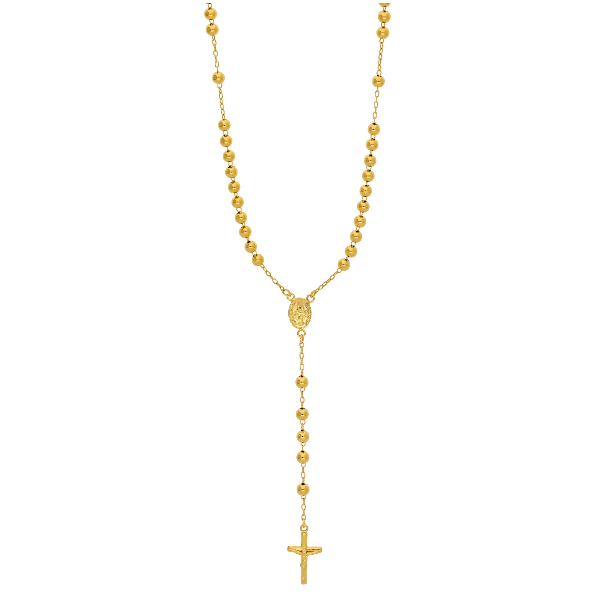 Schwere vergoldete Rosenkranz-Perlenkette aus Sterlingsilber – 50 cm