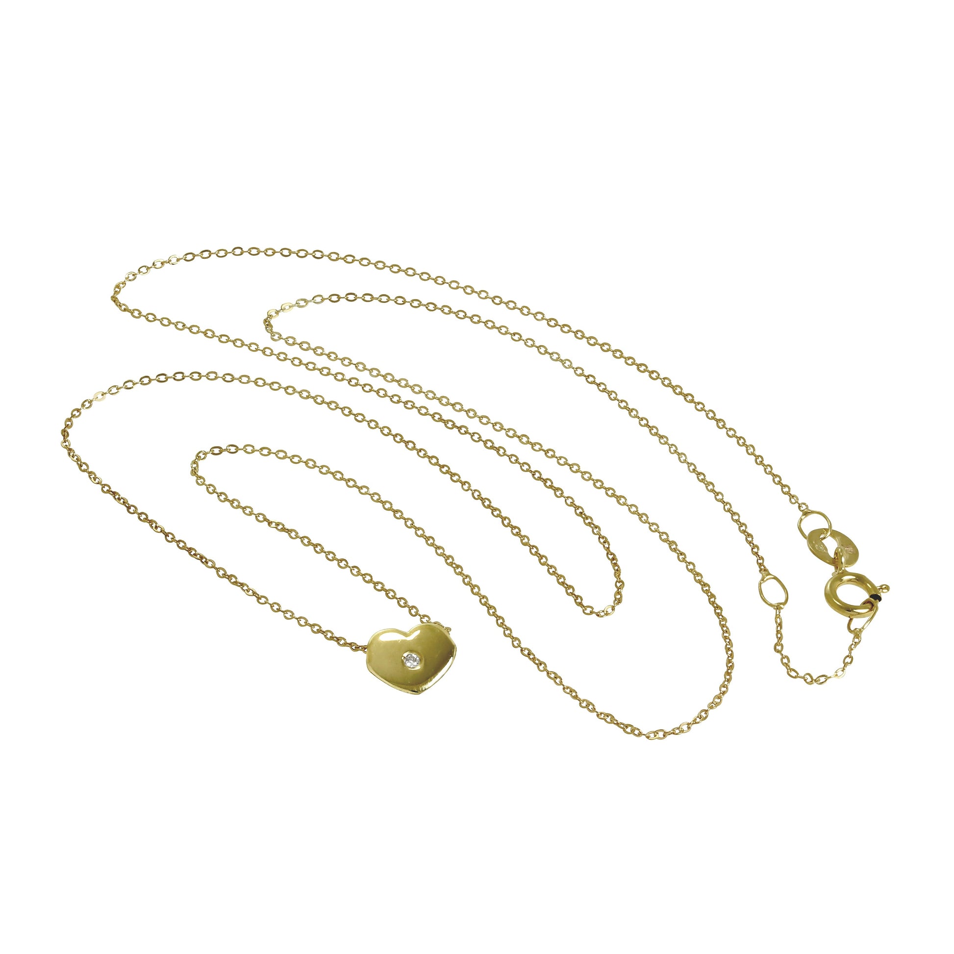 9 Karat Gold & 0,006ct Diamant Herz Perle an Fein 118cm Kette