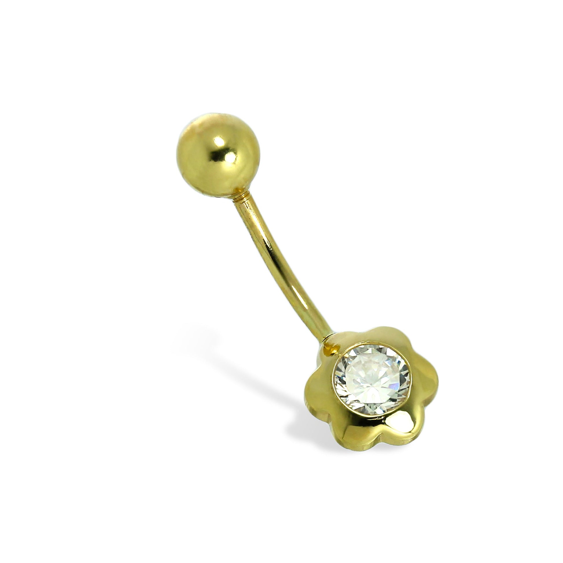 9 Karat Gold & 4mm Klar CZ Kristall Blume Kugel Ende Bauchnabelstange