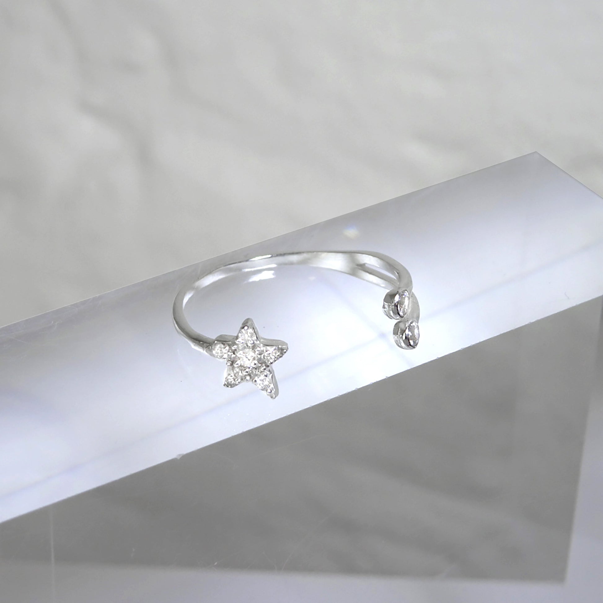 Sterlingsilber Klar CZ Kristall Stern Offen Ring Größenverstellbar