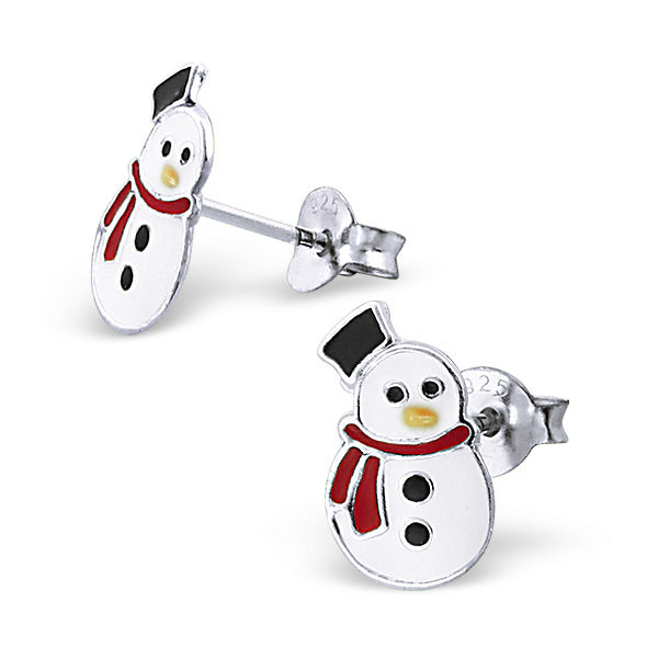 Sterlingsilber & Emaille Fröhlicher Schneemann Ohrstecker