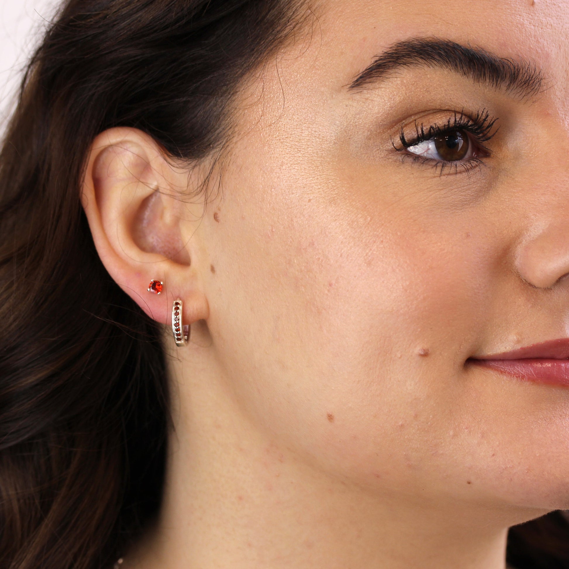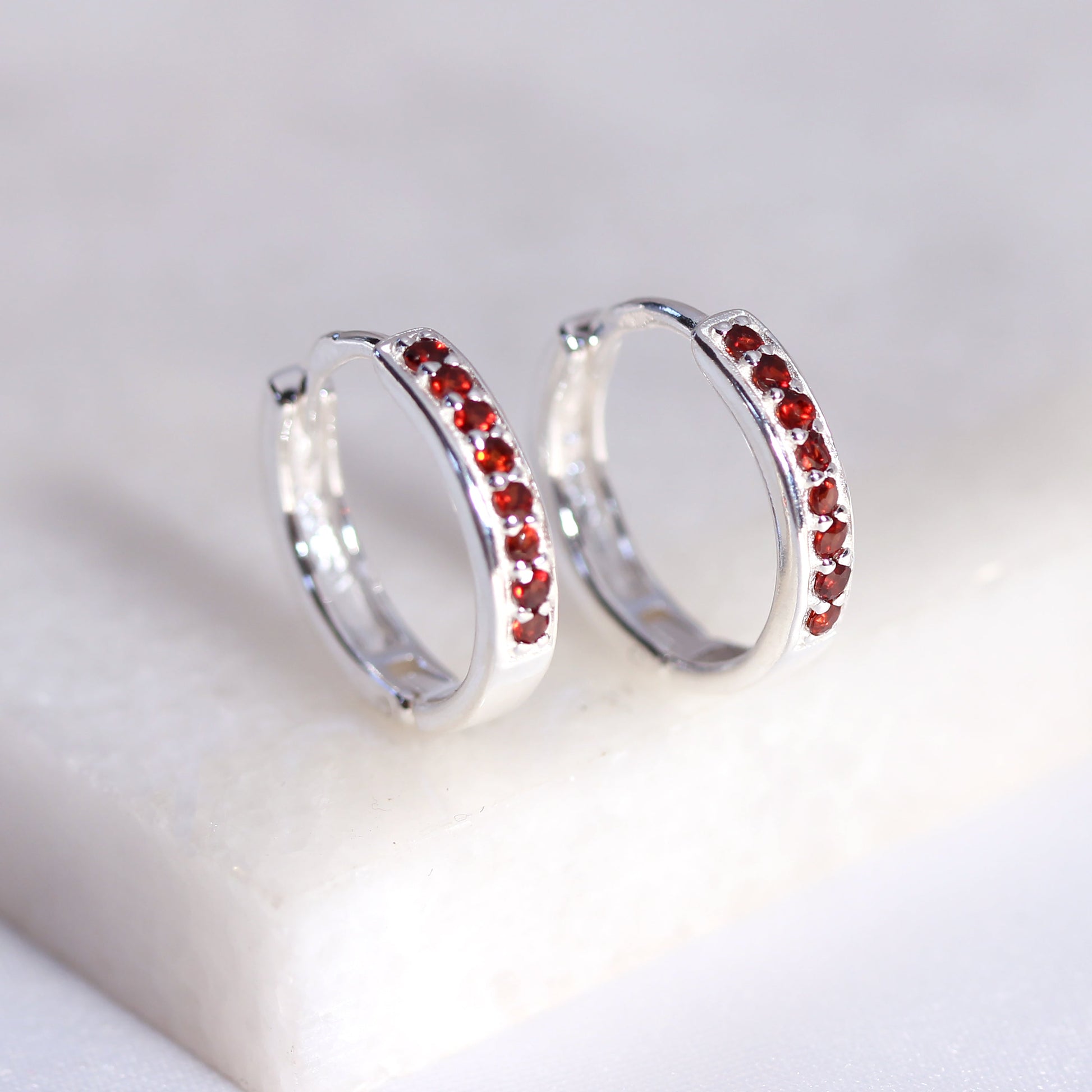 Sterlingsilber Granat CZ Pavé Fassung 15mm Klappcreolen Ohrringe