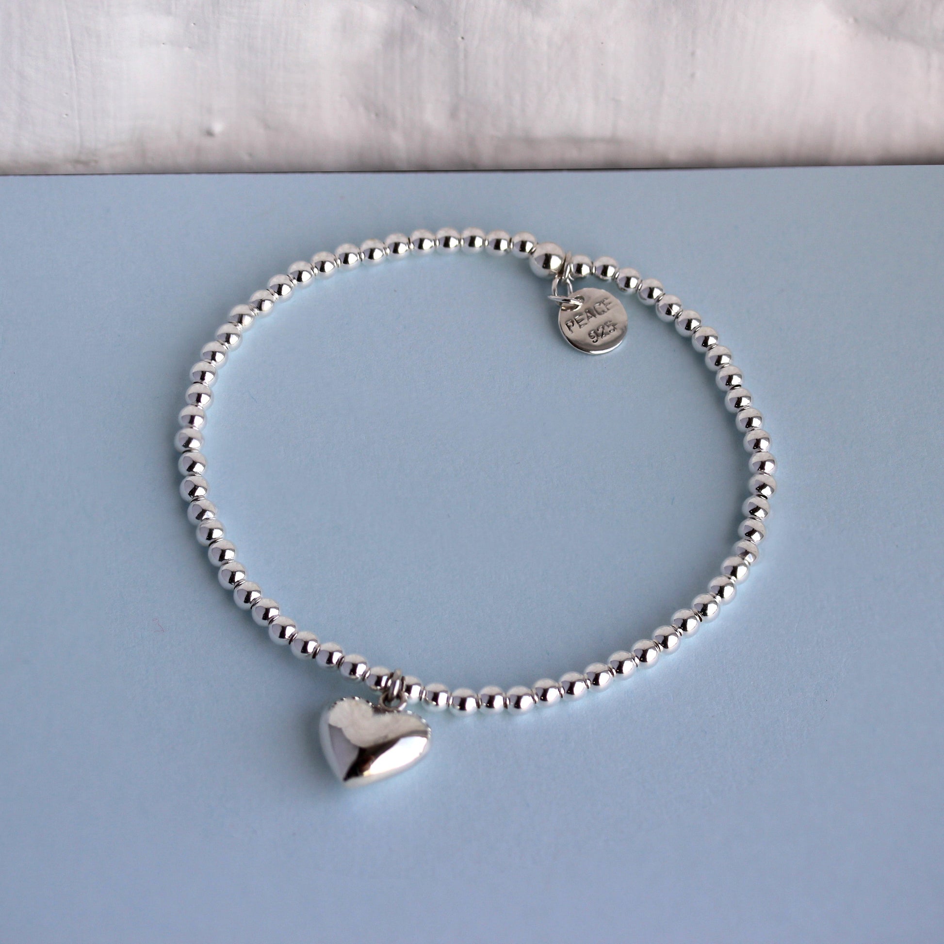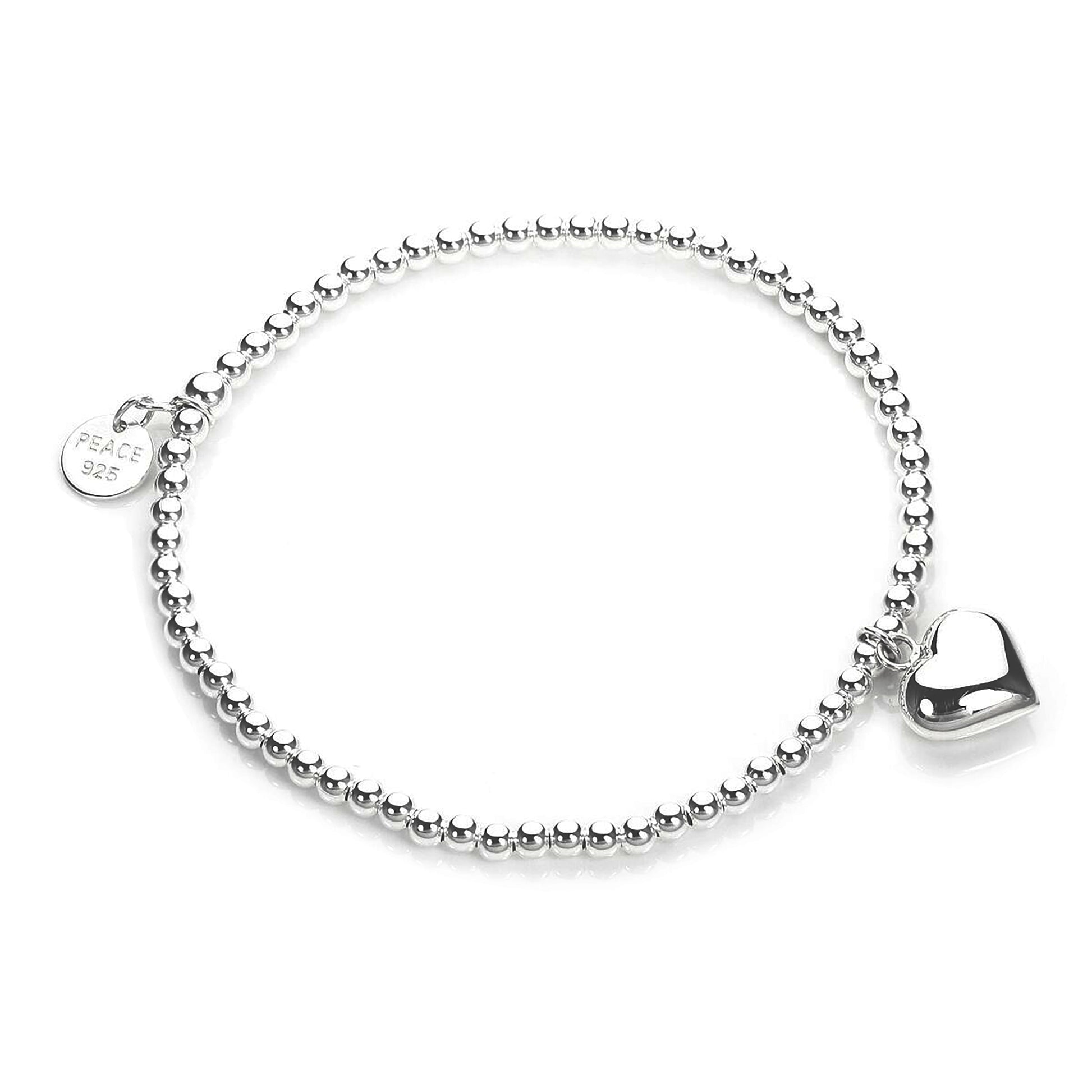 Sterlingsilber Dehnbar Kugel Herz Anhänger Armband