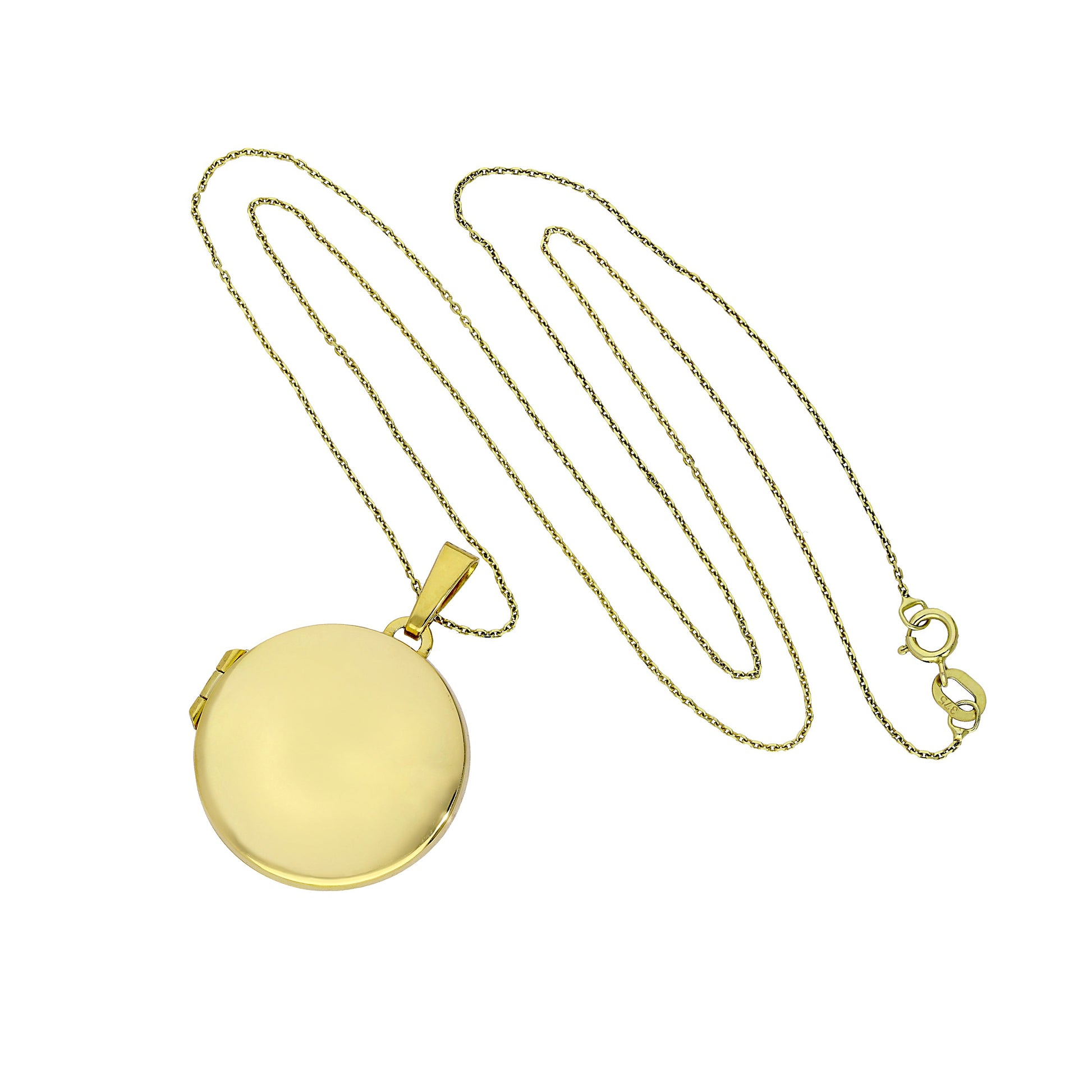 Große gravierbare runde Medaille aus 9 Karat Gold an einer Kette, 16–20 Zoll