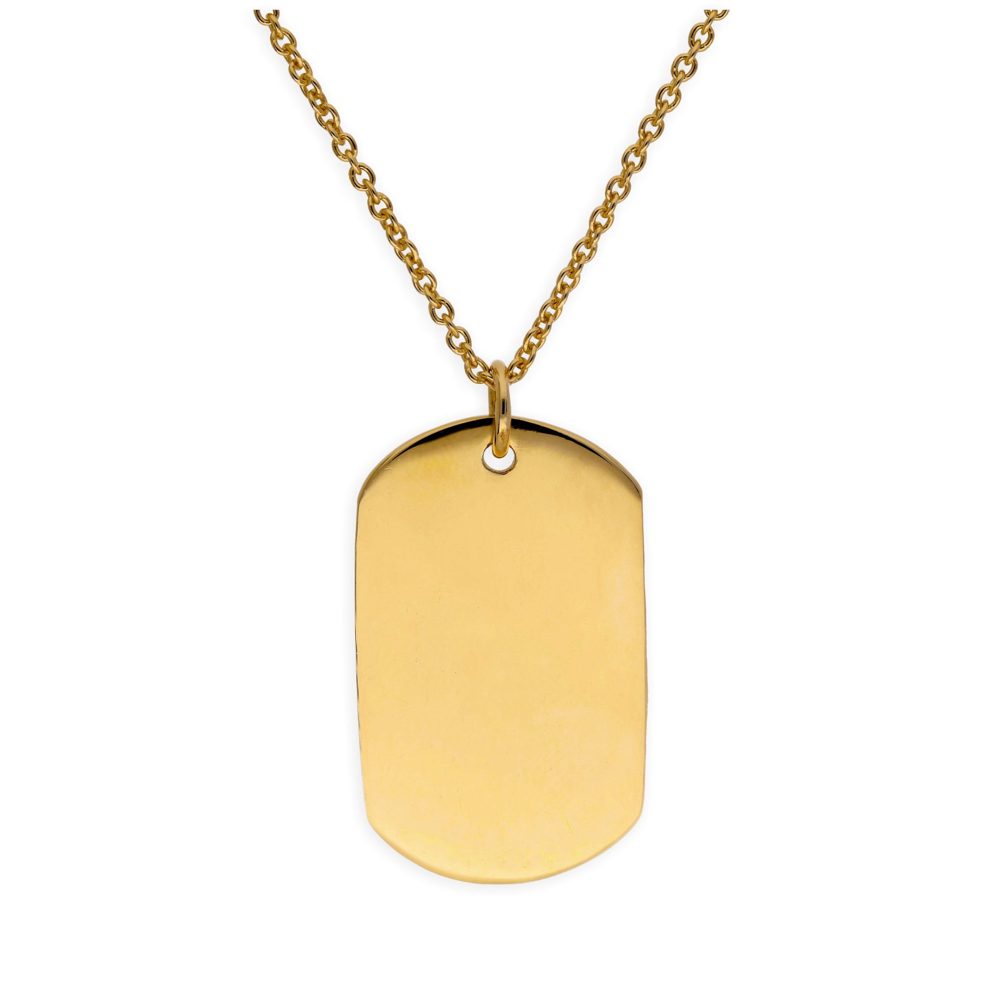 Große vergoldete Halskette aus Sterlingsilber mit Dog Tag, 16–24 Zoll