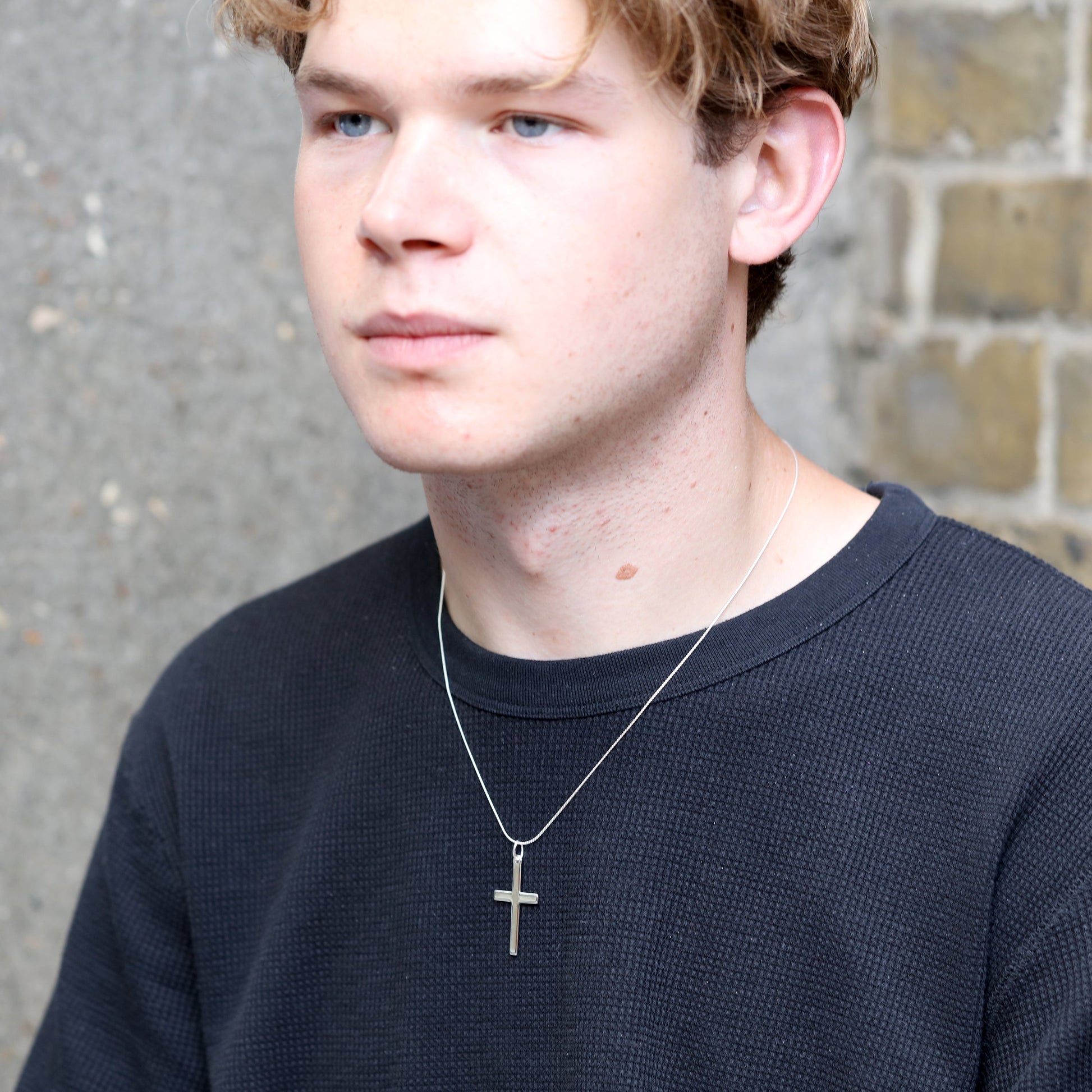 Groß Sterlingsilber Kreuz Anhänger Halskette 40,5 - 56cm
